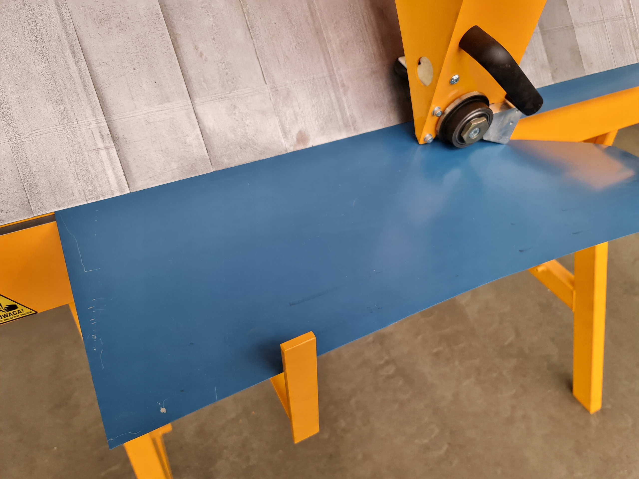 - Станок нашего производства открывается с помощью одного рычаг, поднимающий всю верхнюю балку на 220 мм вверх. Однако другие станки, например, западных марок и китайские, открываются двумя ручками, т.е. отдельно с левой и отдельно с правой стороны, что существенно усложняет работу листообработчика!!!