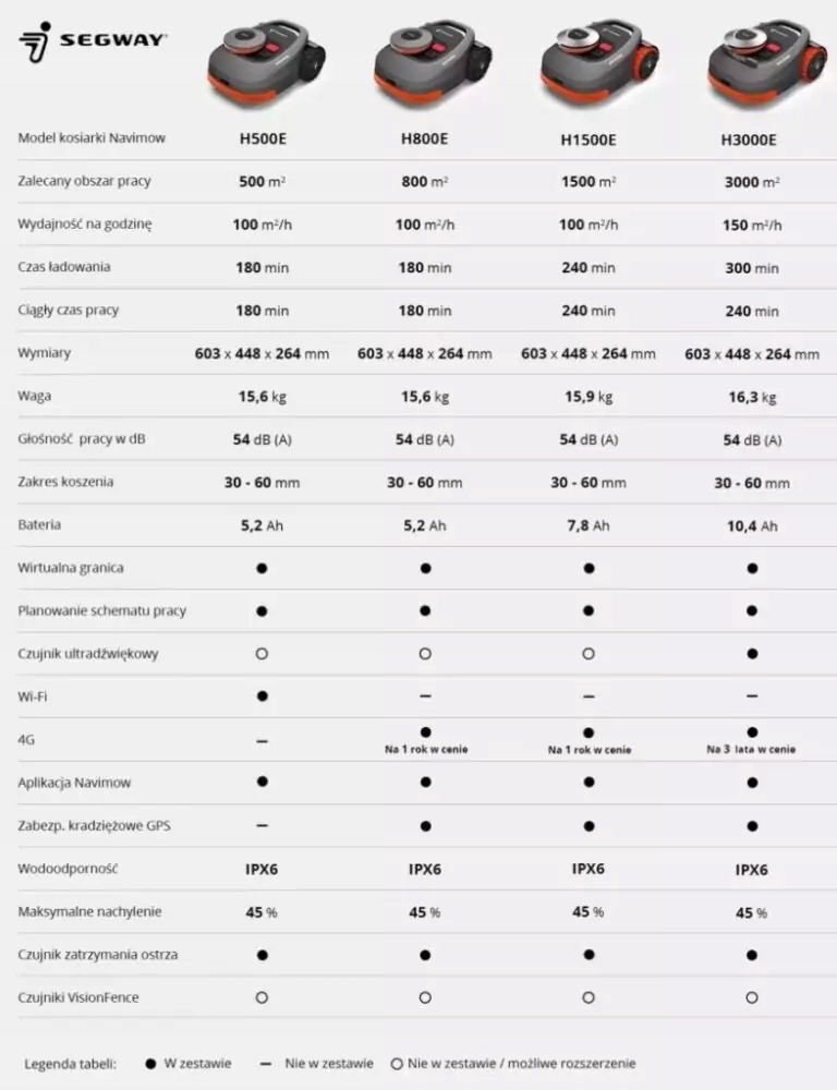 segway navimow h3000e Эффективность косителя ок. Продукт может косить большую поверхность в течение часа от промежуточных пространств, чем на отдельных малых газонах. Когда трава влажная или длинная, эффективность работы также меньше. Чем более плоская поверхность газона, тем больше эффективность работы