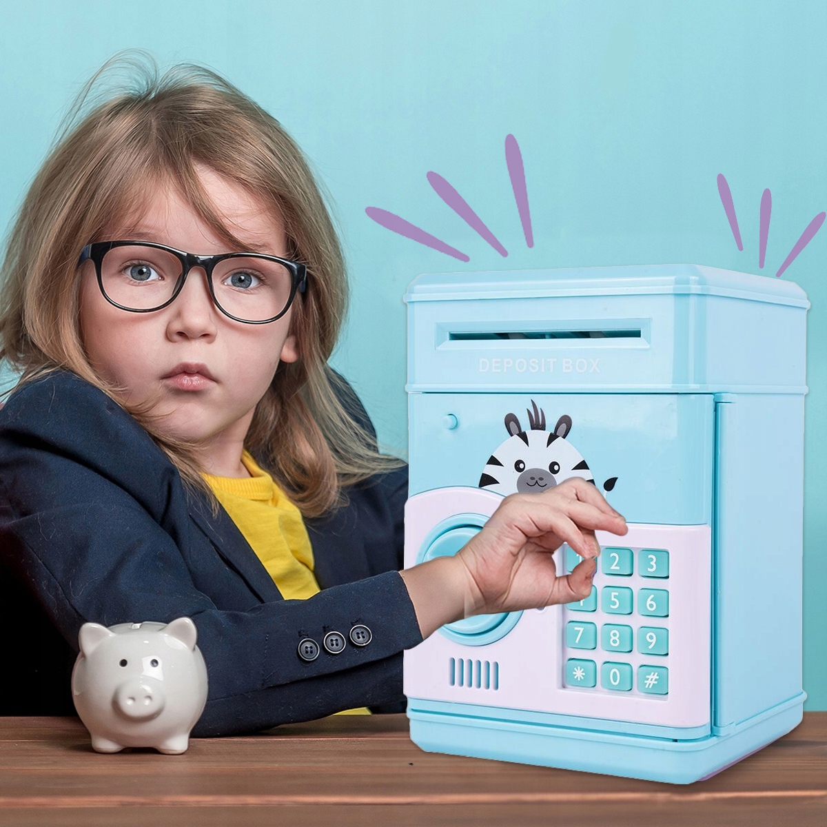 Чтобы открыть сейф в копилке, введите 4-значный пароль. Затем поверните замок. При открытии сейф издает настоящие звуки открытия!