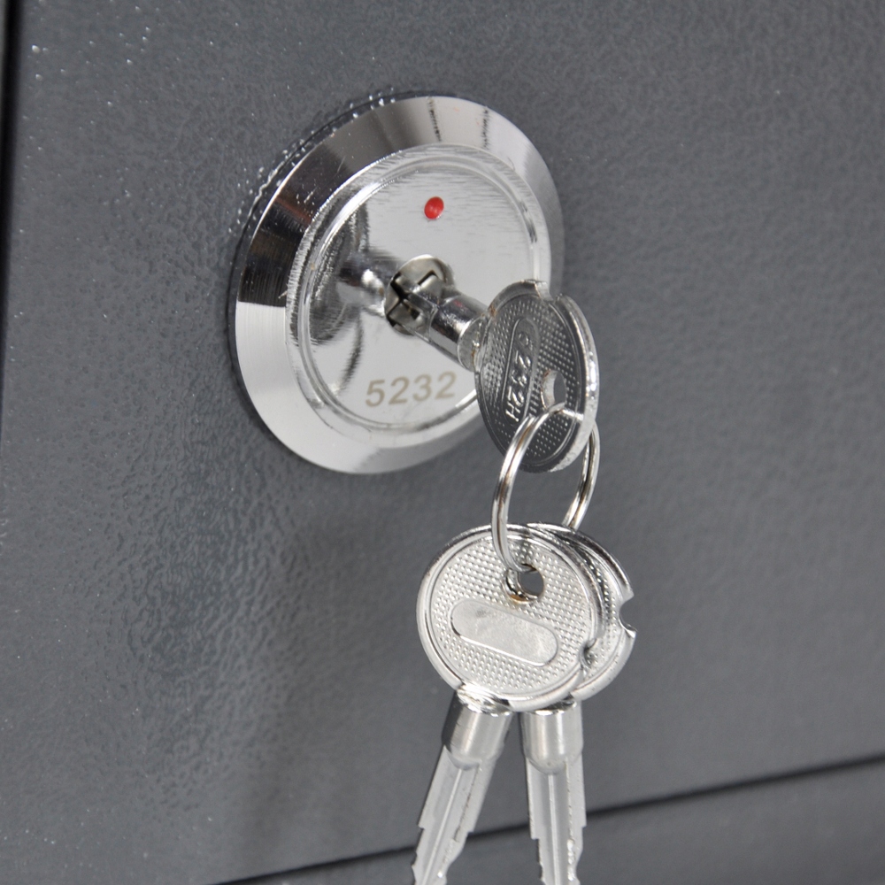 НАДЕЖНЫЙ ЗАМОК: Сейф оснащен механическим замком с крестовым ключом.