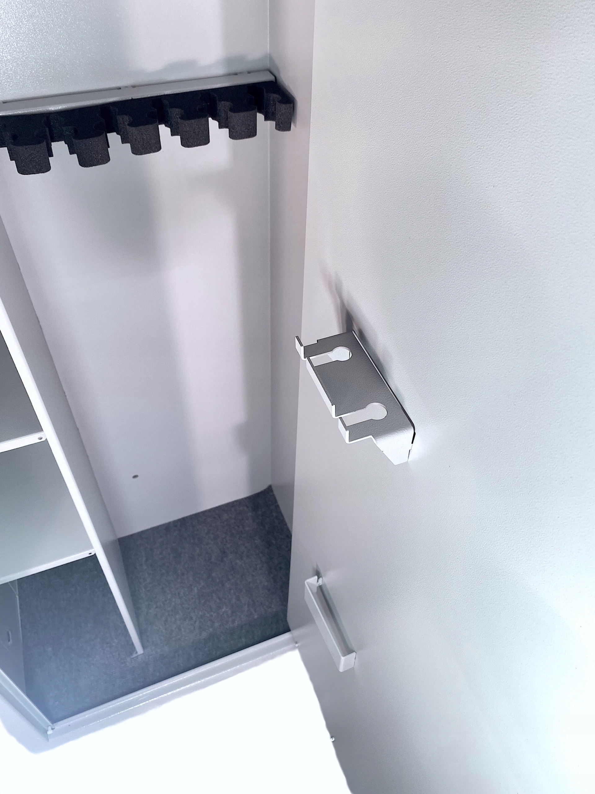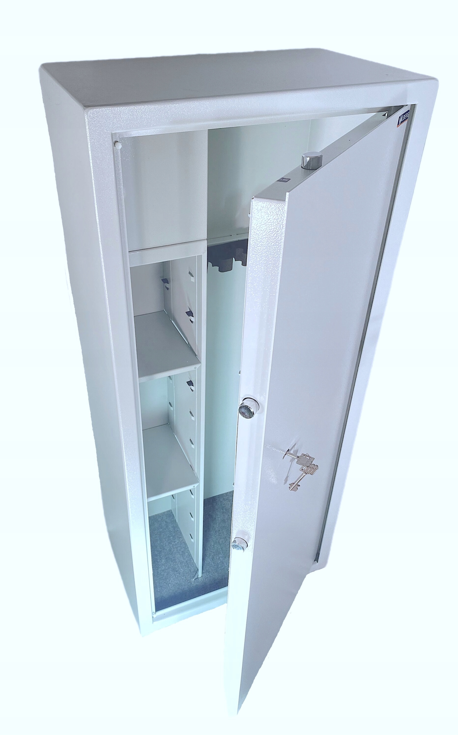 - Сейф имеет 6 отделений для длинноствольного оружия, два передвижные полки и хранилище для оружия, боеприпасов или других ценностей,