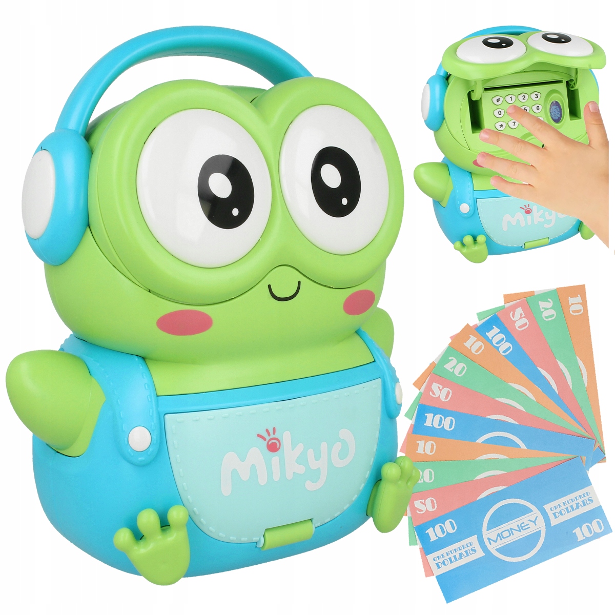 Копилка автоматически принимает бумажные деньги. Просто приложите банкноту к входному отверстию, и лягушка автоматически соберет деньги.