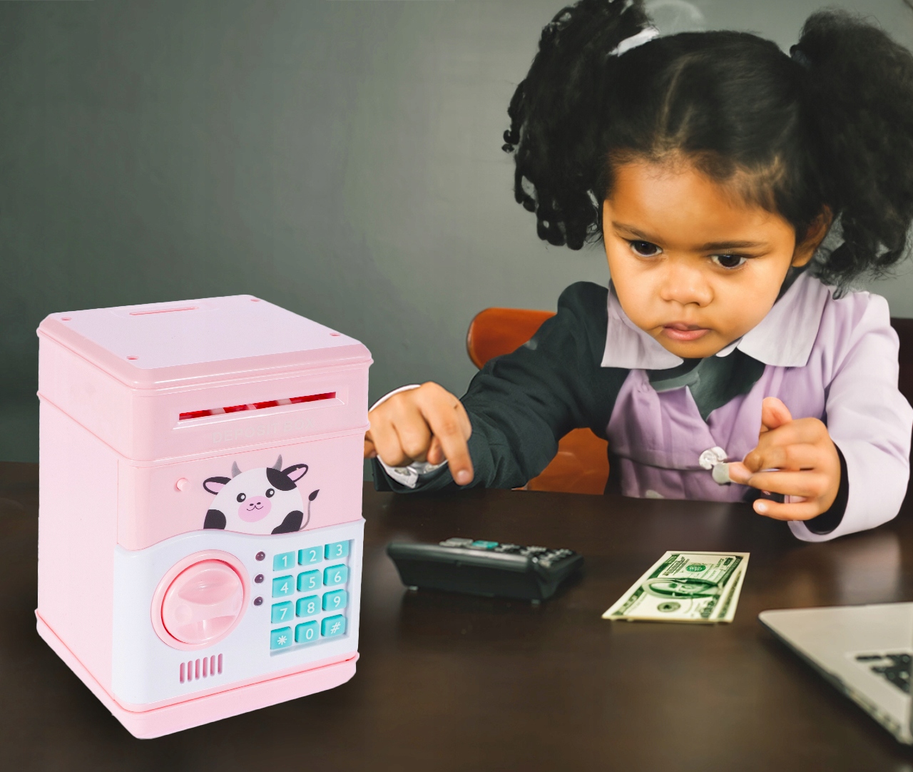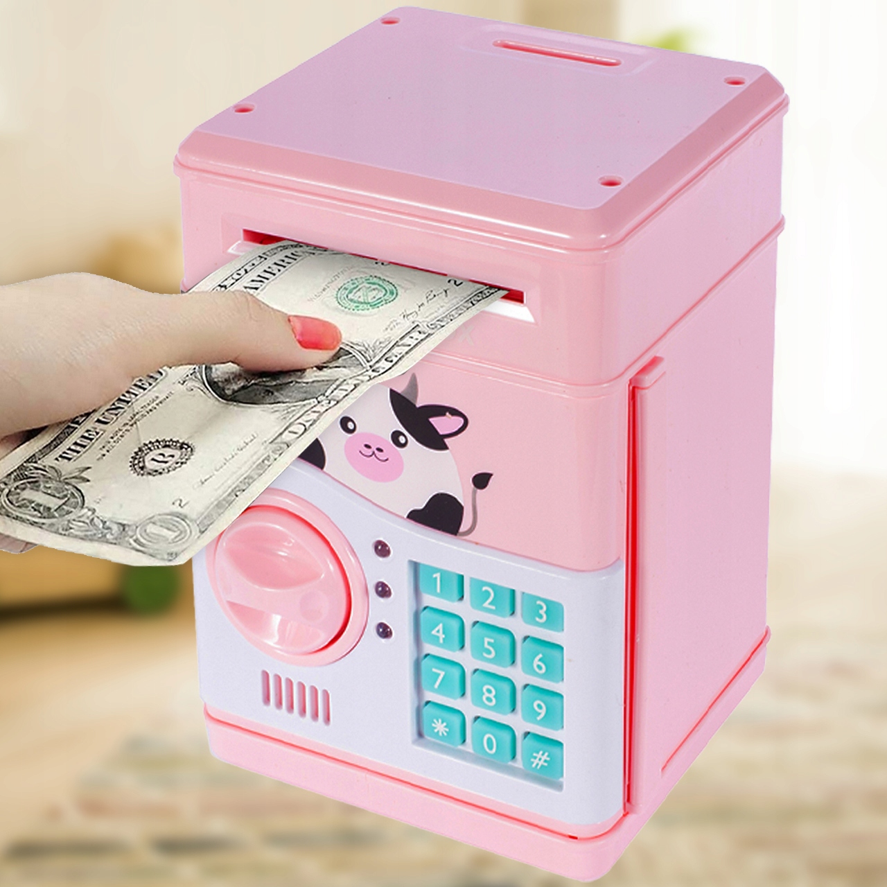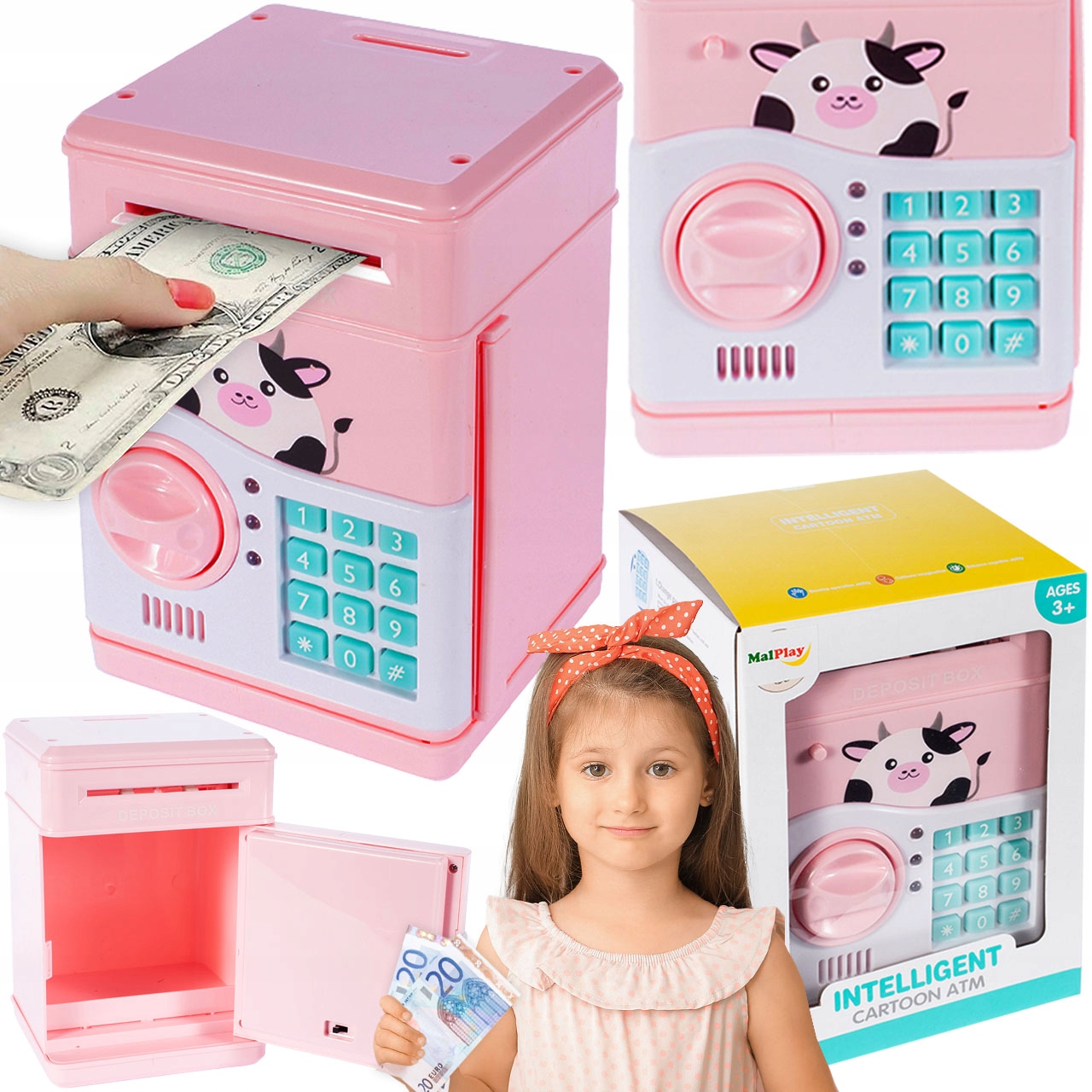 Копилка в виде сейфа – это много часов веселья и обучения экономии. Вы можете положить деньги в сейф и вынуть их после ввода соответствующего кода. Когда вы подносите банкноту к входному отверстию, сейф забирает ее автоматически и начинает играть одна из 7 мелодий.