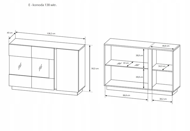 - Комод - витрина - 138 . 2 см/90,5 см/40 см