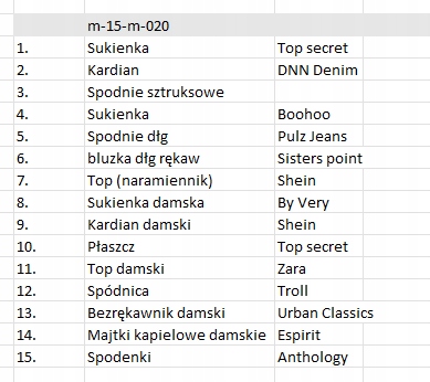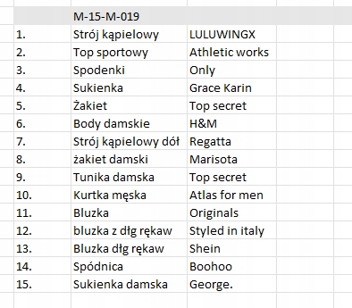 - различных размеров и категорий (блузки, брюки, толстовки, платья, куртки и т.д.)