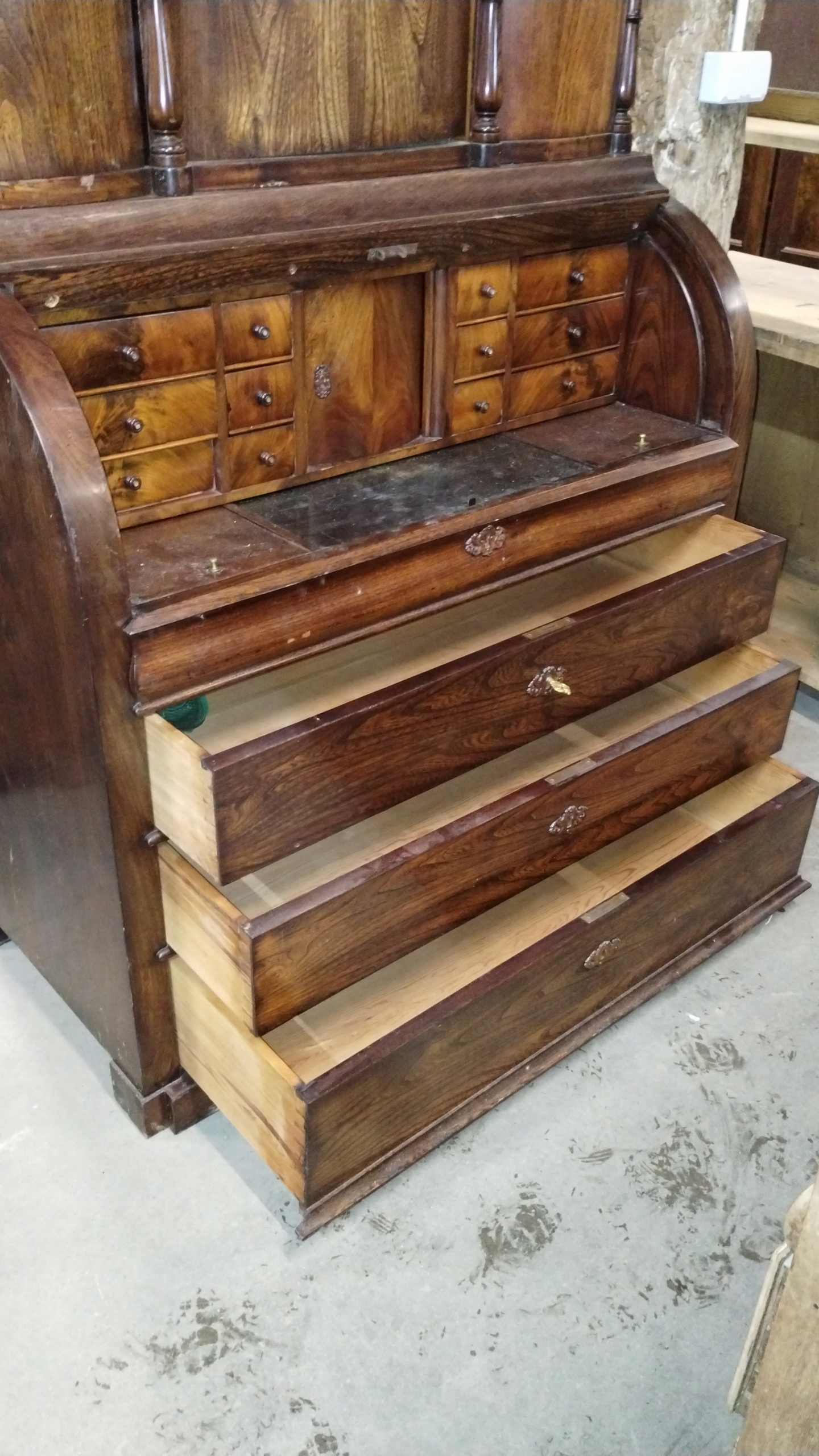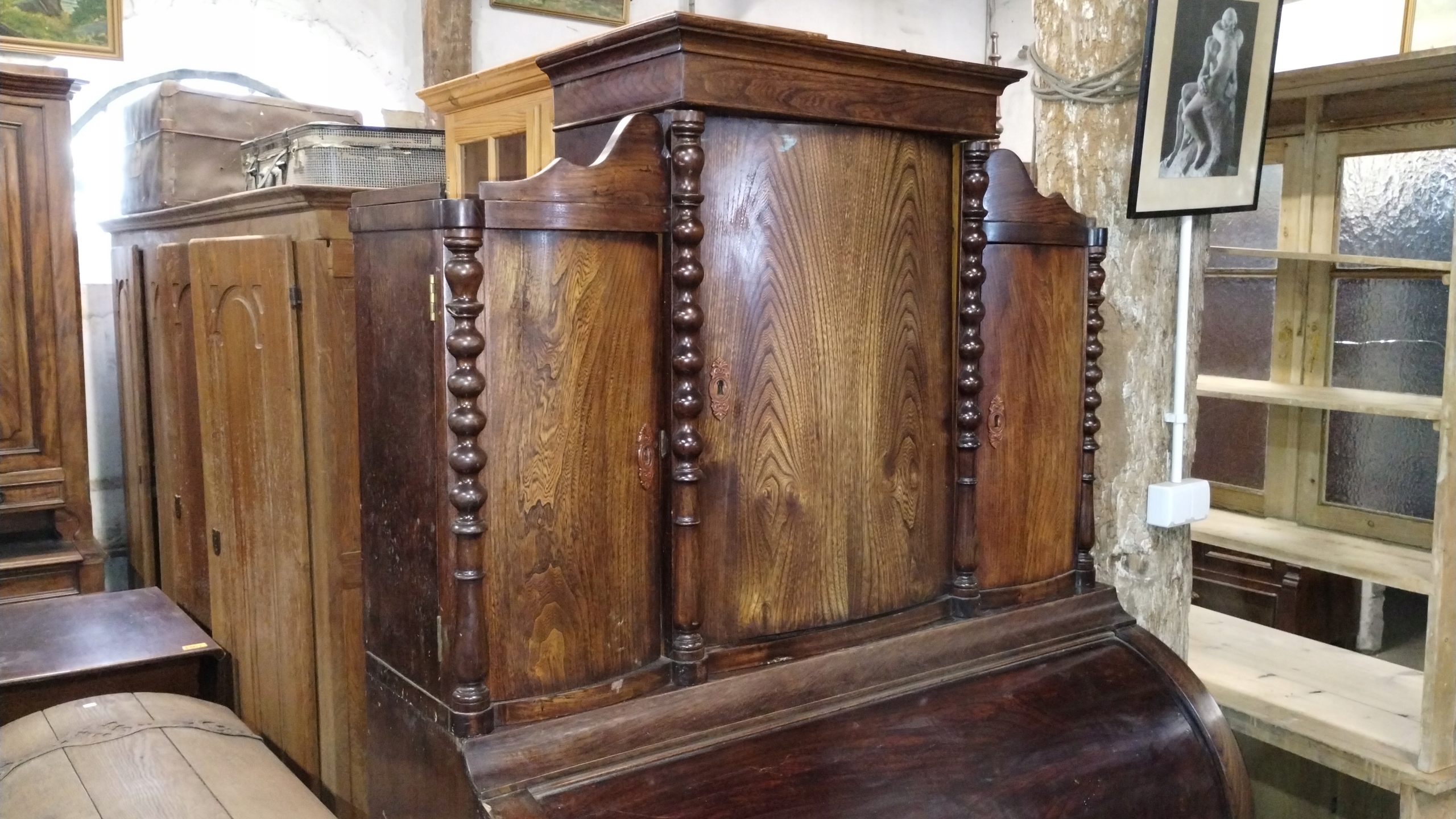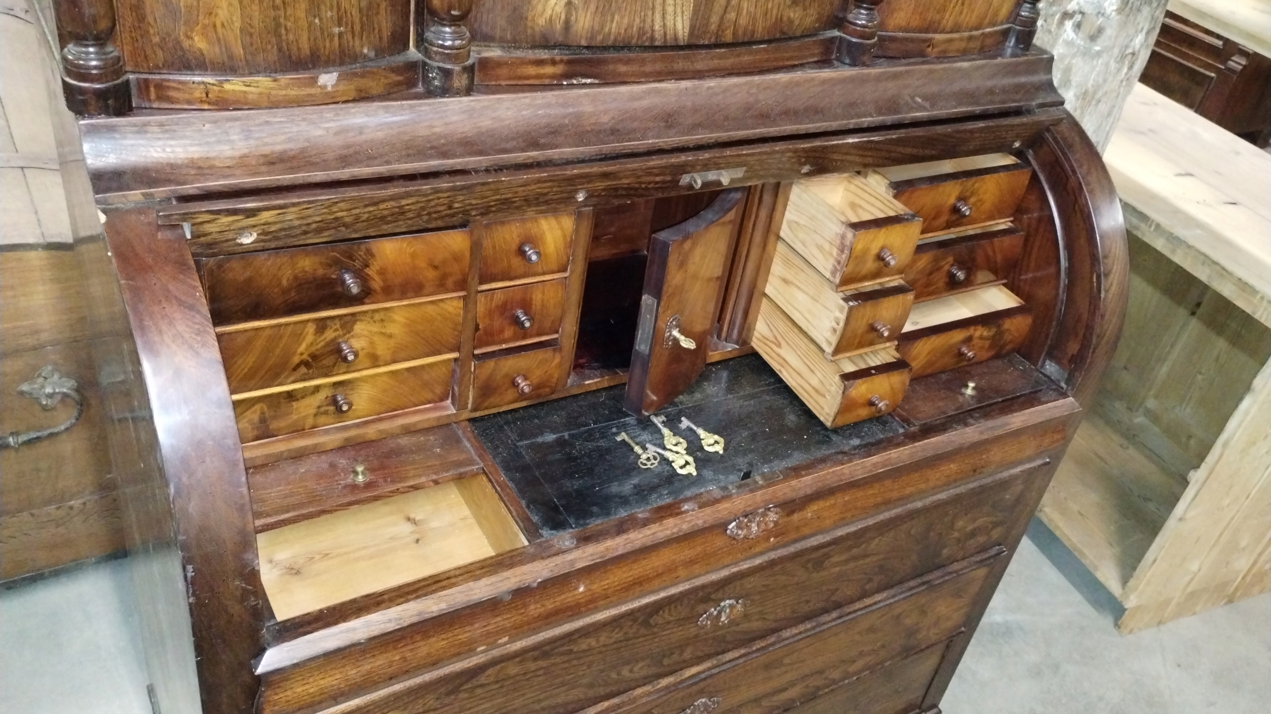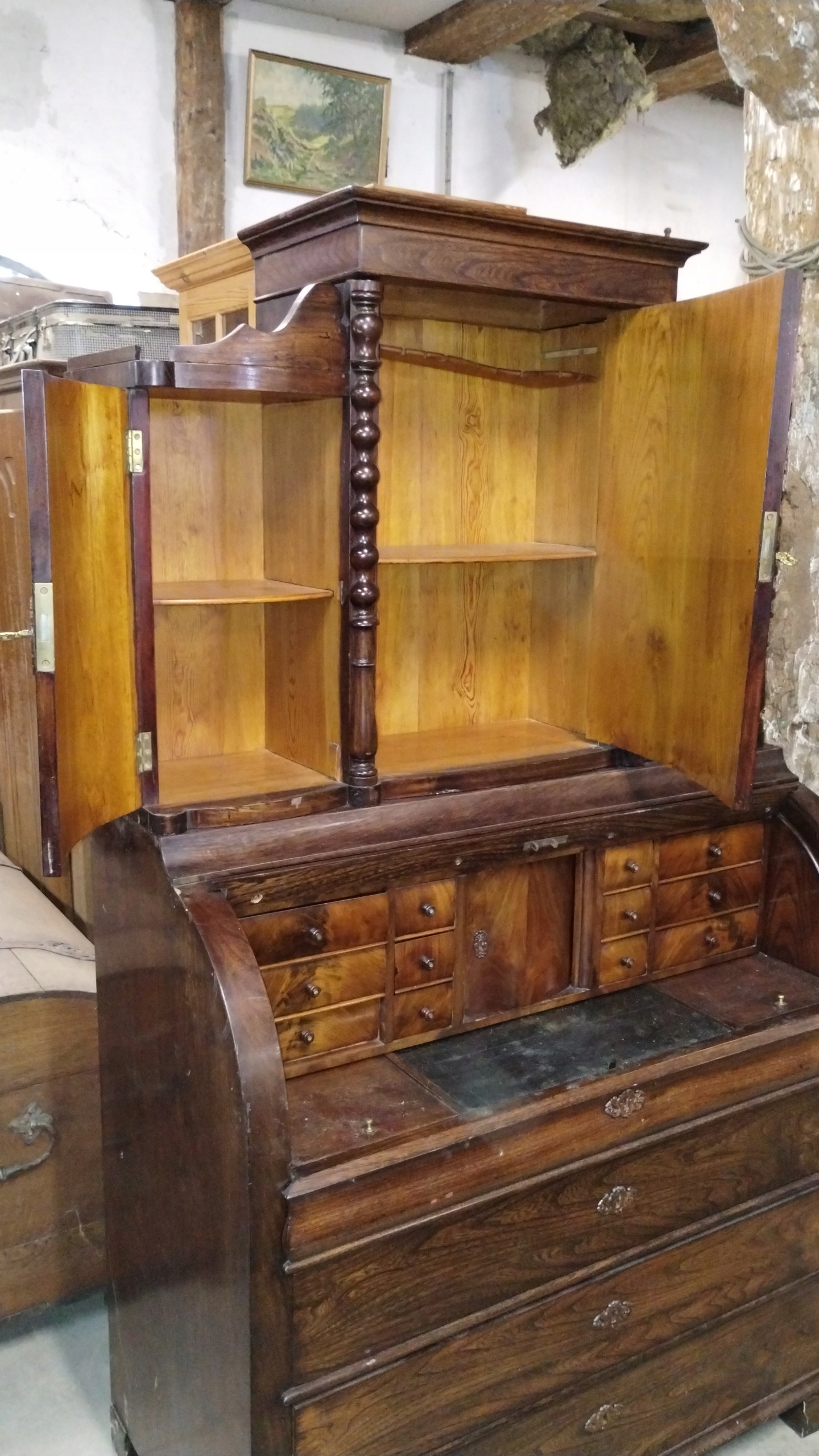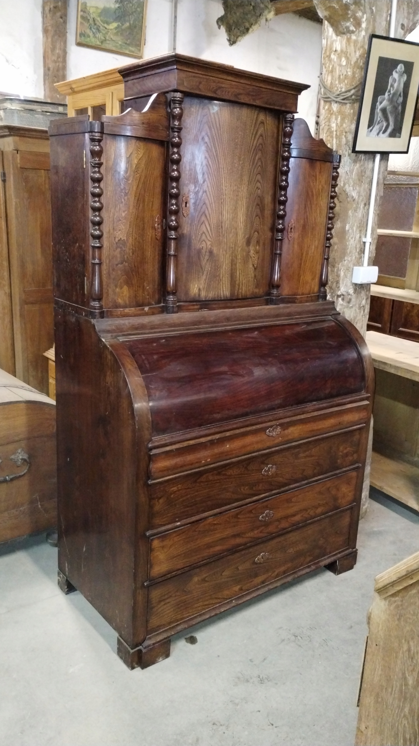 Бидермейер-секретарь цилиндрической формы, массив вяза, 19 век, антиквариат