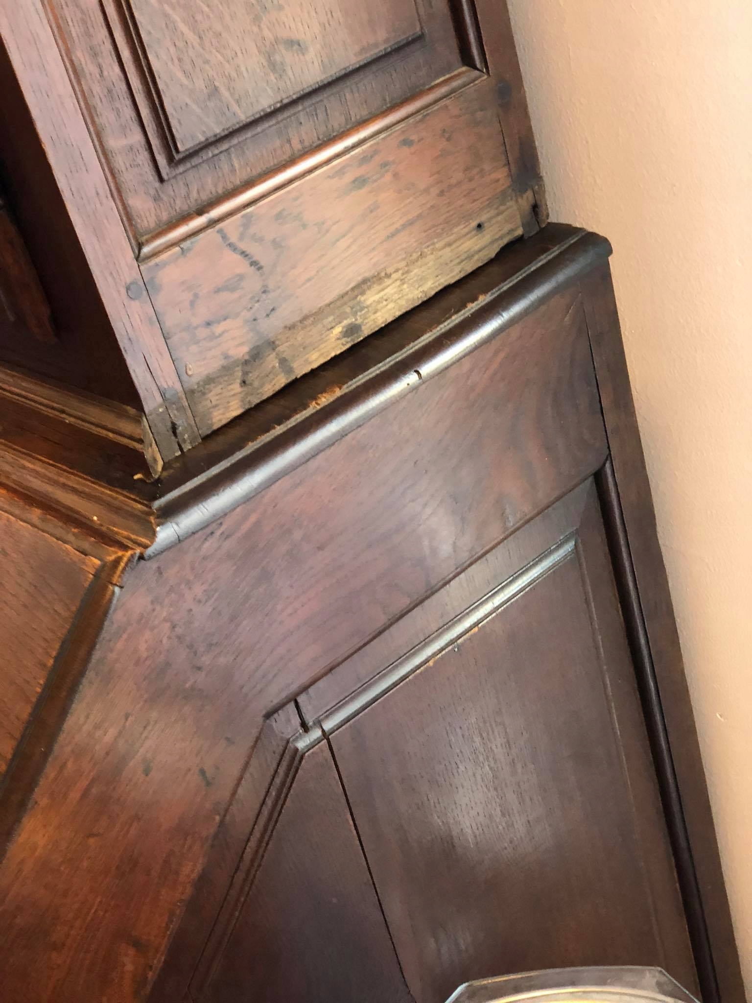 Мебель в очень хорошем визуальном и техническое состояние. Все замки рабочие, ключи в комплекте. На поверхности имеются незначительные следы использования – это небольшие царапины, которые не мешают ее использованию, а лишь подчеркивают старинный характер мебели. Стол требует только косметики.
