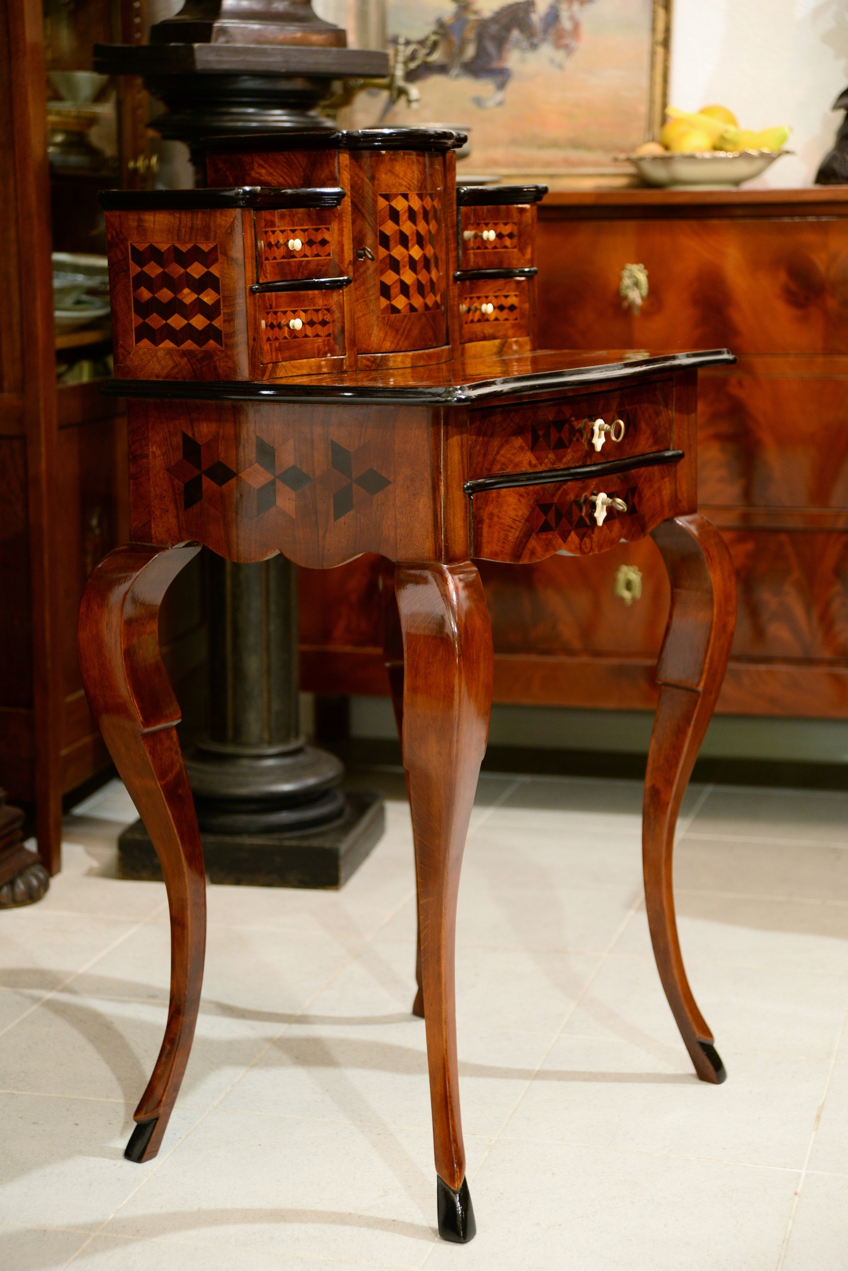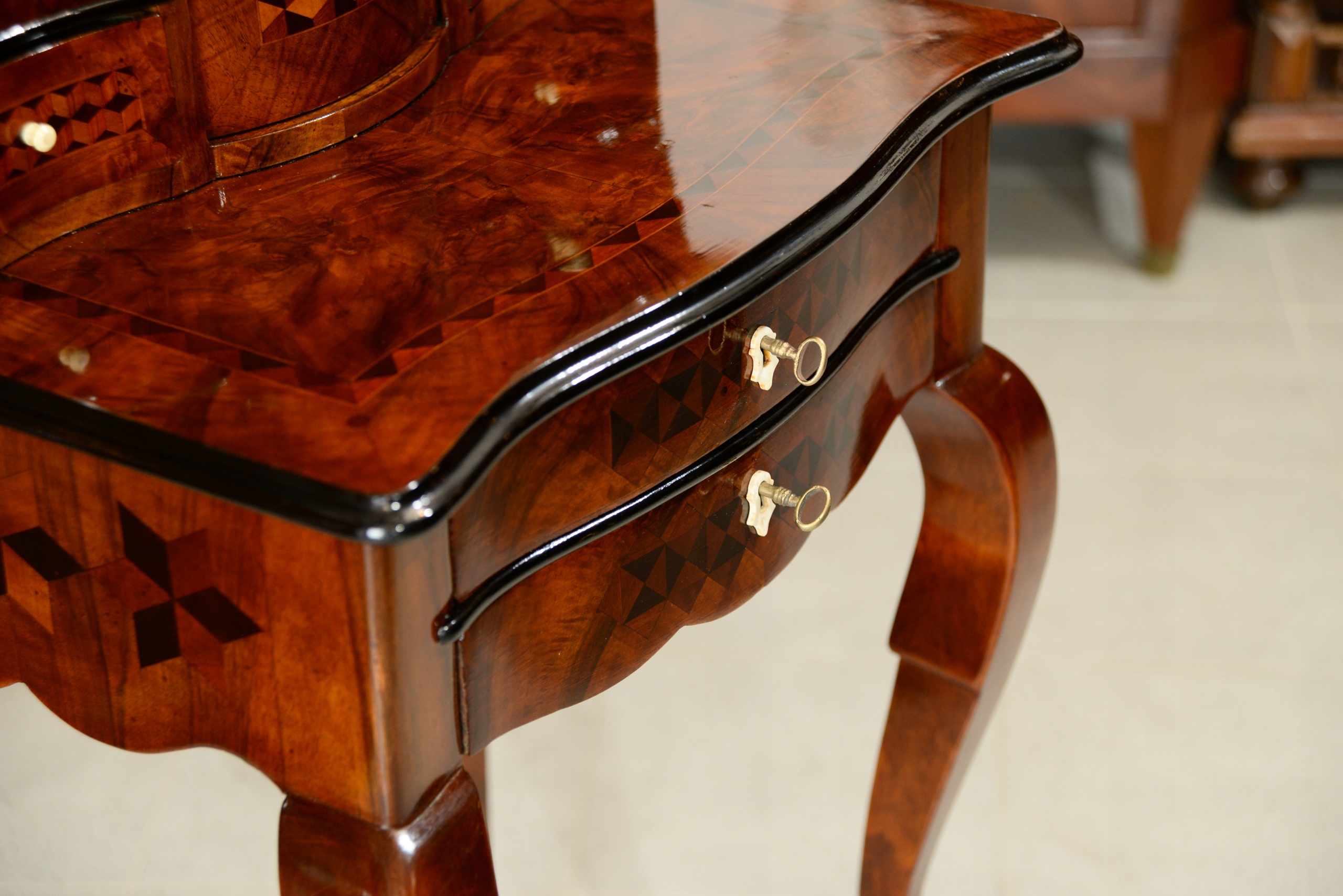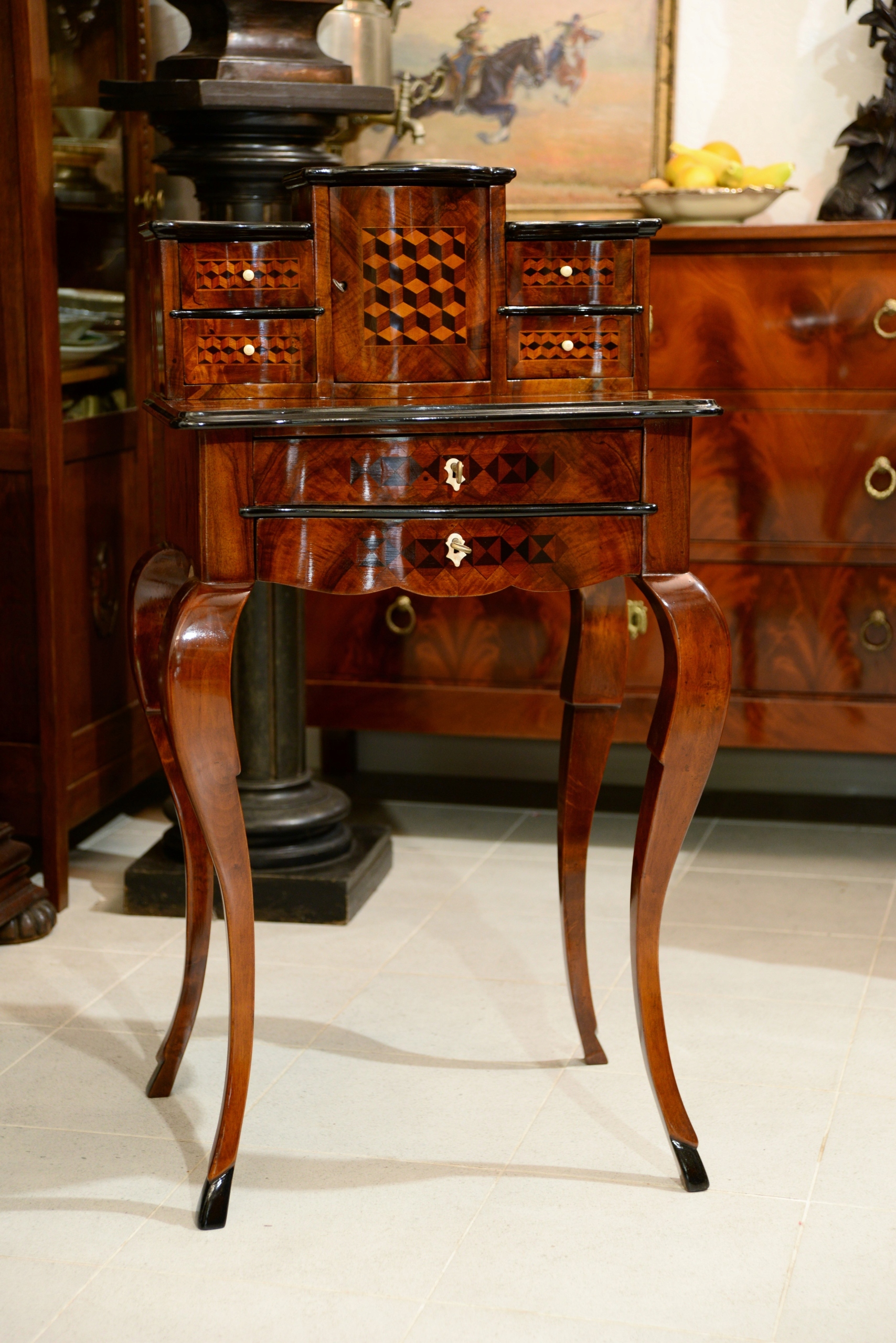 - вверху два ящика с изящной инкрустацией