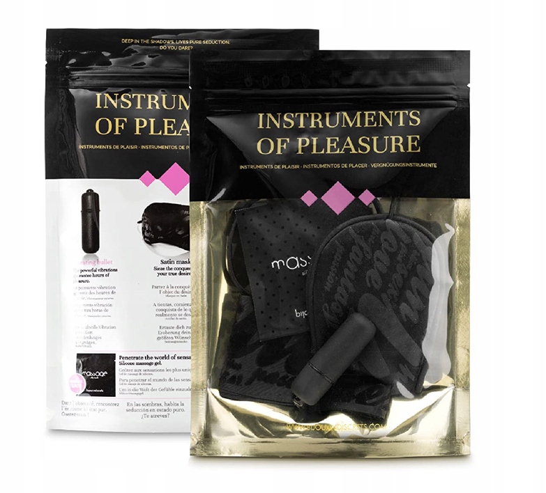 В наборе самые необходимые гаджеты > для каждого новичка в мире доминирования, а также для фаната БДСМ. Бондажные шарфы и повязки на глаза позволят вам на 100% сосредоточиться на прикосновениях партнера... и на каждом прикосновении к чувствительным местам с помощью мини-массажера.