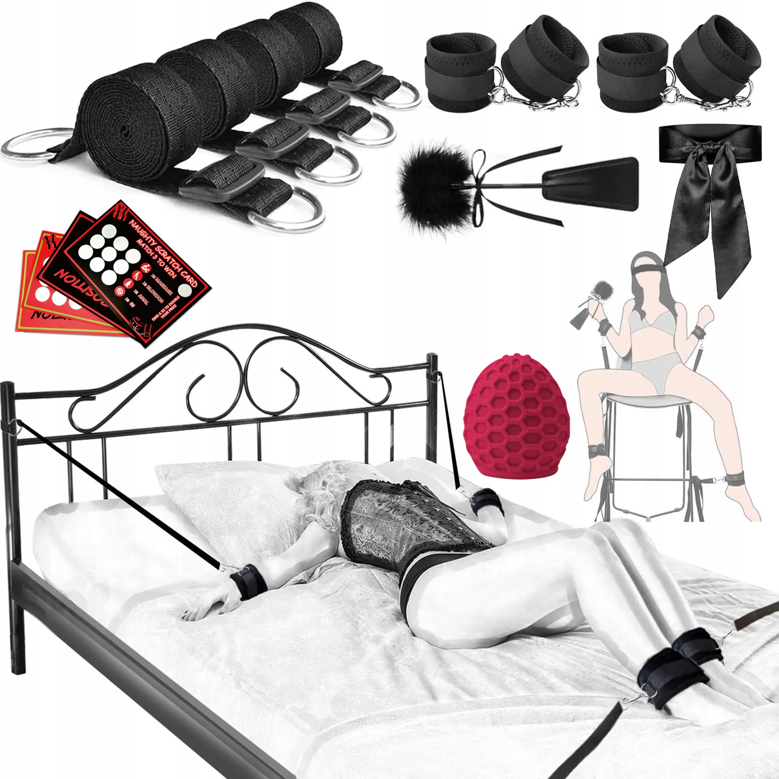 5. Просмотрите свои фантазии с этим заманчивым набором BDSM, идеально подходит для начинающих. После использования храните набор ограничений под матрасом или демонтируйте его для удобного хранения. Его портативность делает его идеальным для целей путешествия.