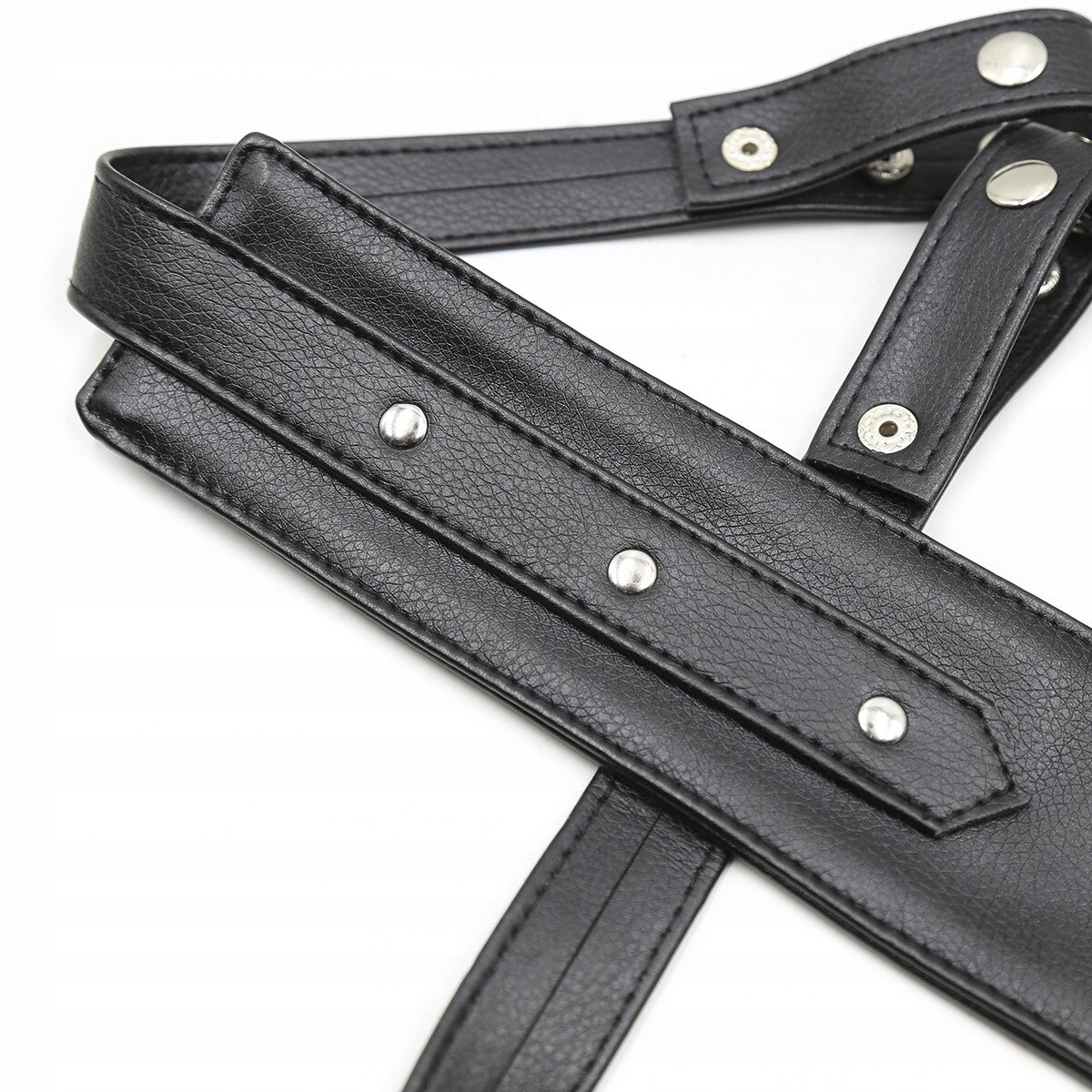 Эта высококачественная обвязка была разработана специально для мужчин, которые ценят стиль и экологические материалы. Он изготовлен из экологической кожи, а значит, безопасен для животных и не наносит вреда окружающей среде. Привязь имеет прочные, прочные ремни, адаптированные к телу, обеспечивающие максимальный комфорт при ношении. Каждый ремешок тщательно обработан, чтобы обеспечить долговечность и эстетичный внешний вид. Передняя часть шлейки украшена декоративными металлическими элементами, которые придают ей характер и стиль. Застегивается сзади на кнопки, благодаря чему идеально подходит по размеру тела.