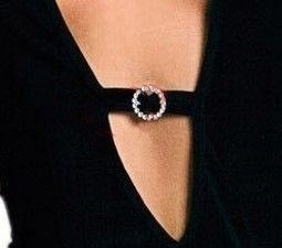 Глубокий вырез, украшенный кольцом из циркона, подчеркивает бюст.