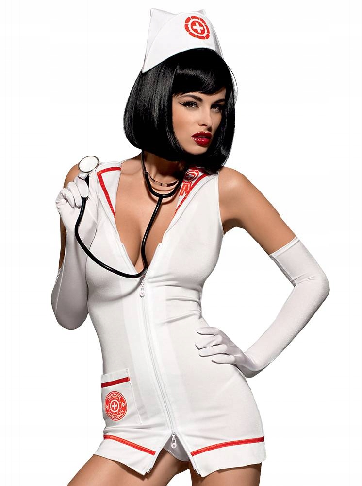 Платье экстренной помощи – это Одержимое платье, которое воплотит в жизнь фантазии многих мужчин. В комплект входят: платье, стринги, настоящий медицинский стетоскоп, шапочка медсестры и перчатки. Платье застегивается на молнию. Длинные белые перчатки изготовлены из эластичной ткани, приятной к телу.