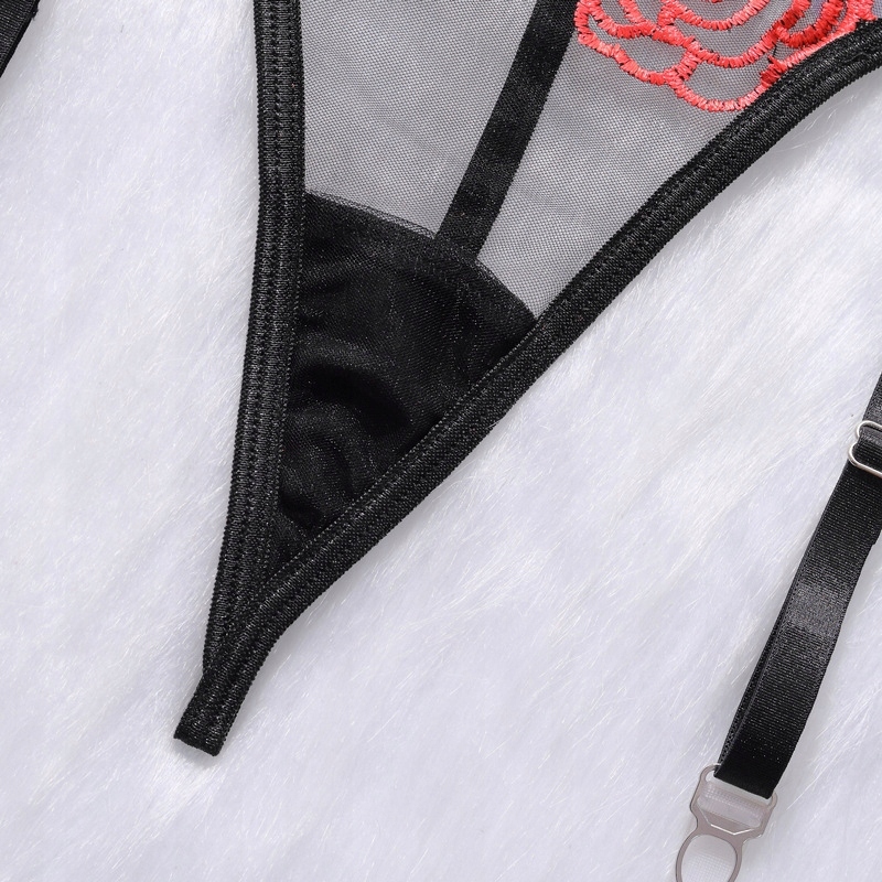 Откройте для себя соблазнительную элегантность с черным кружевным комплектом нижнего белья. Тонкая цветочная вышивка и жесткие чашки подчеркивают естественную красоту фигуры, добавляя женственного шарма. Пояс для чулок с регулируемыми бретелями обеспечивает идеальную посадку, а изящные детали делают комплект исключительно стильным. Идеальный выбор для особых случаев, чтобы чувствовать себя уверенно и чувственно.