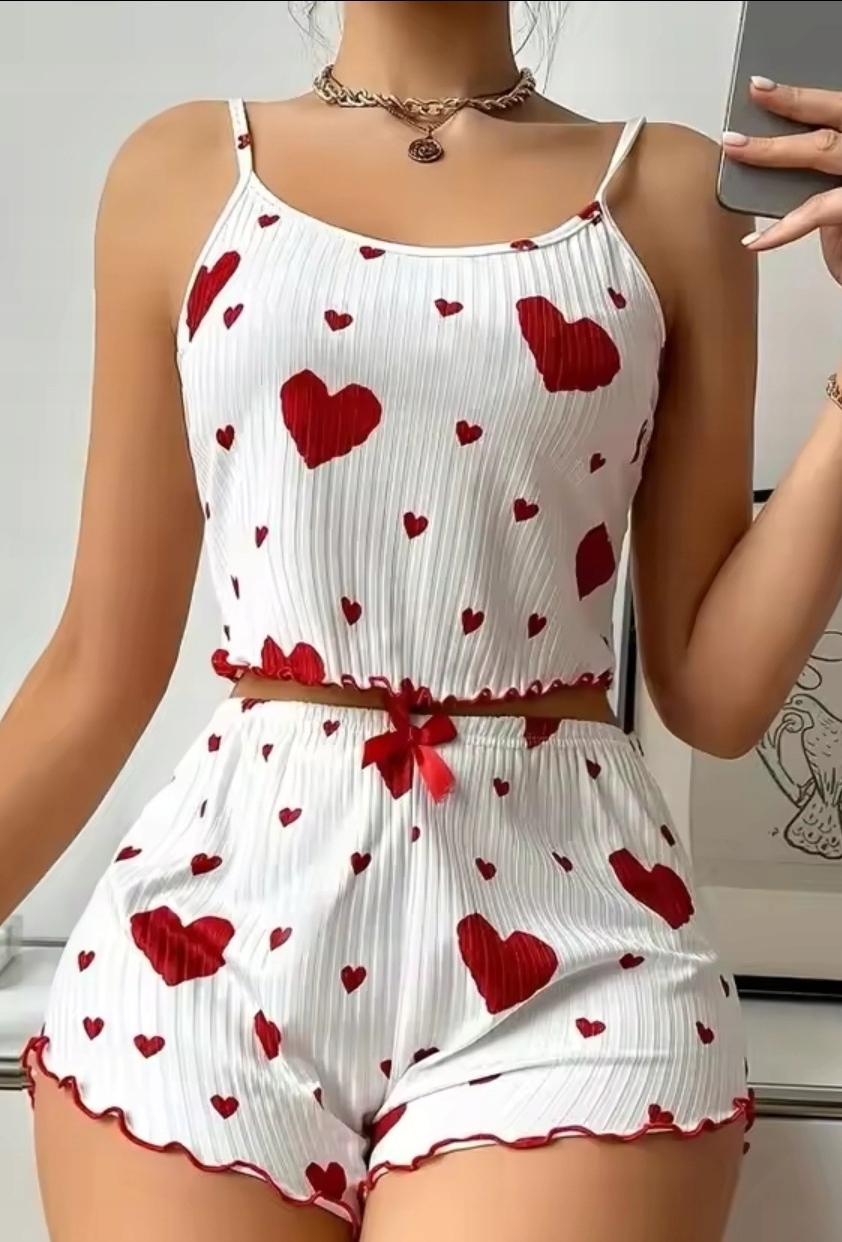 Сексуальная пижама-двойка М/38 сердечки НЕ ПРОЗРАЧНАЯ ночная рубашка