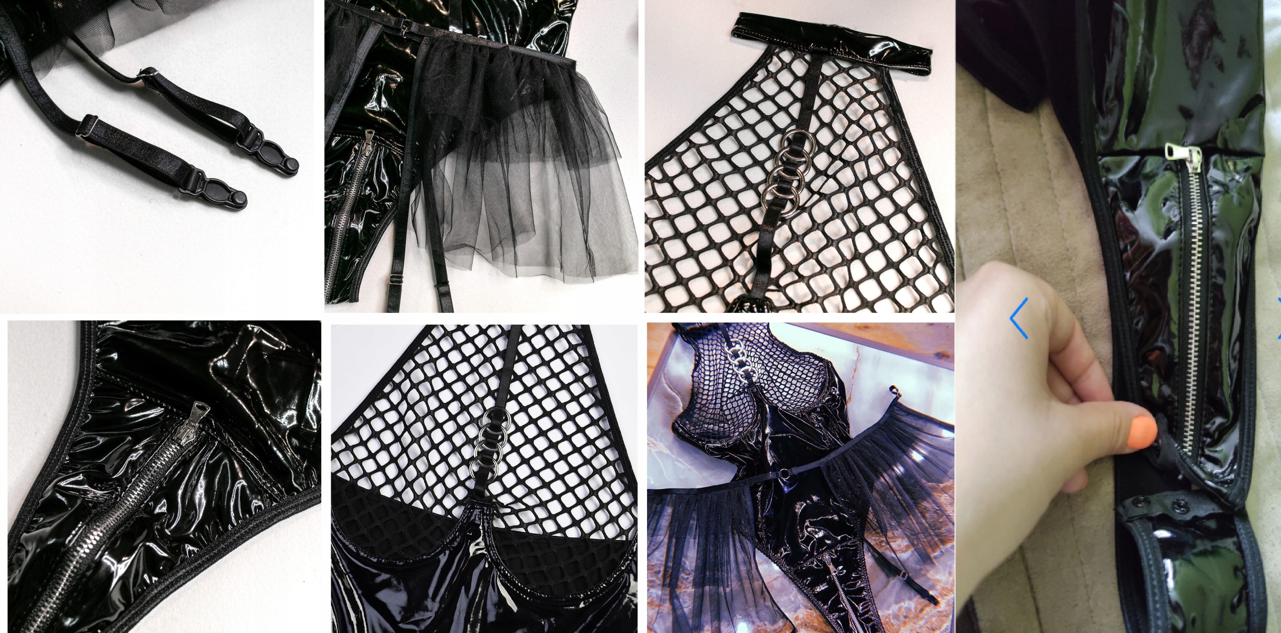 - ⭐Сексуальная кожа платье с соблазнительной сеткой и чувственными 4 декоративными кольцами