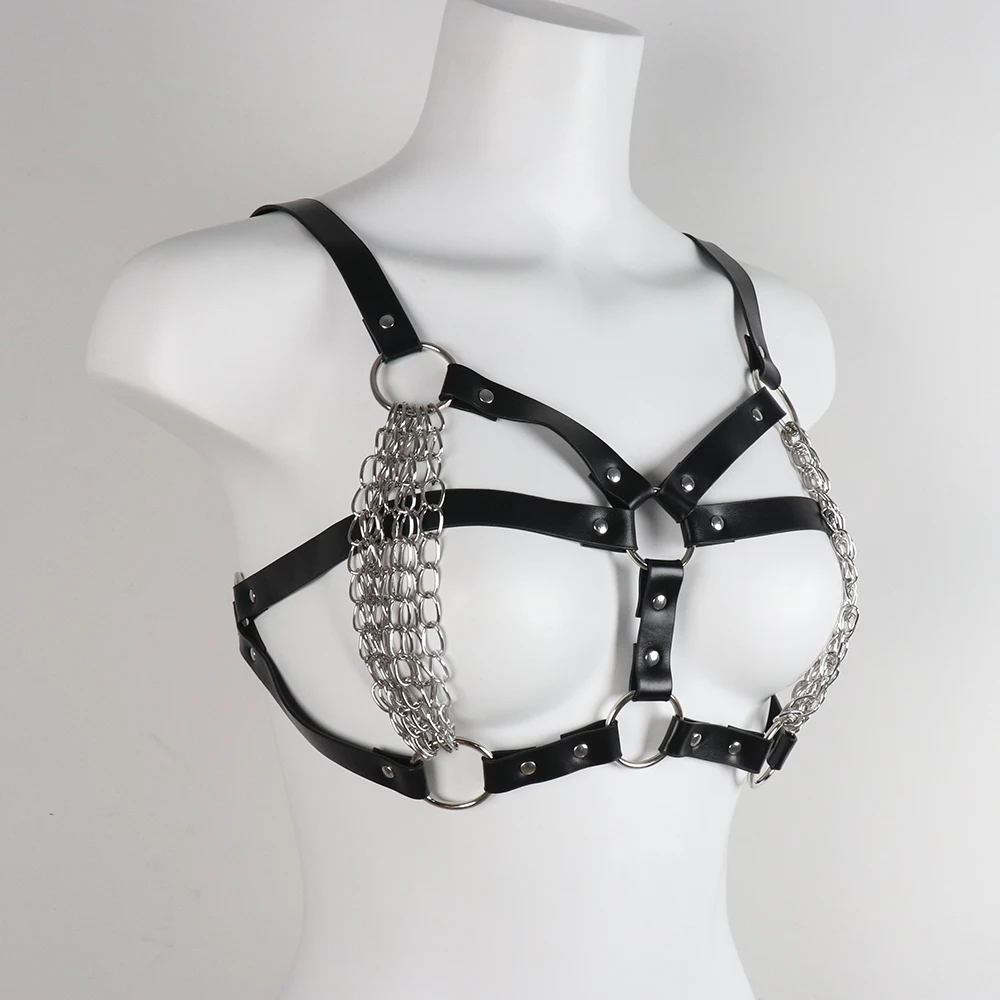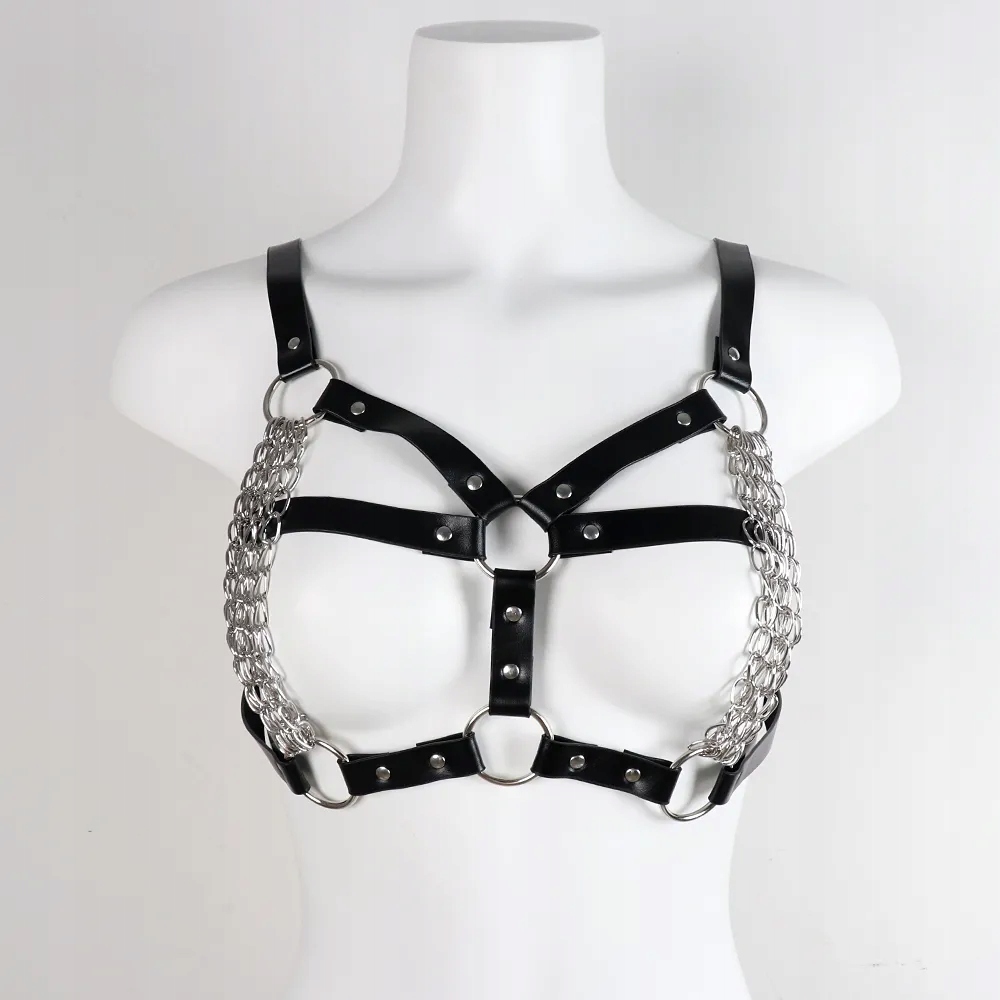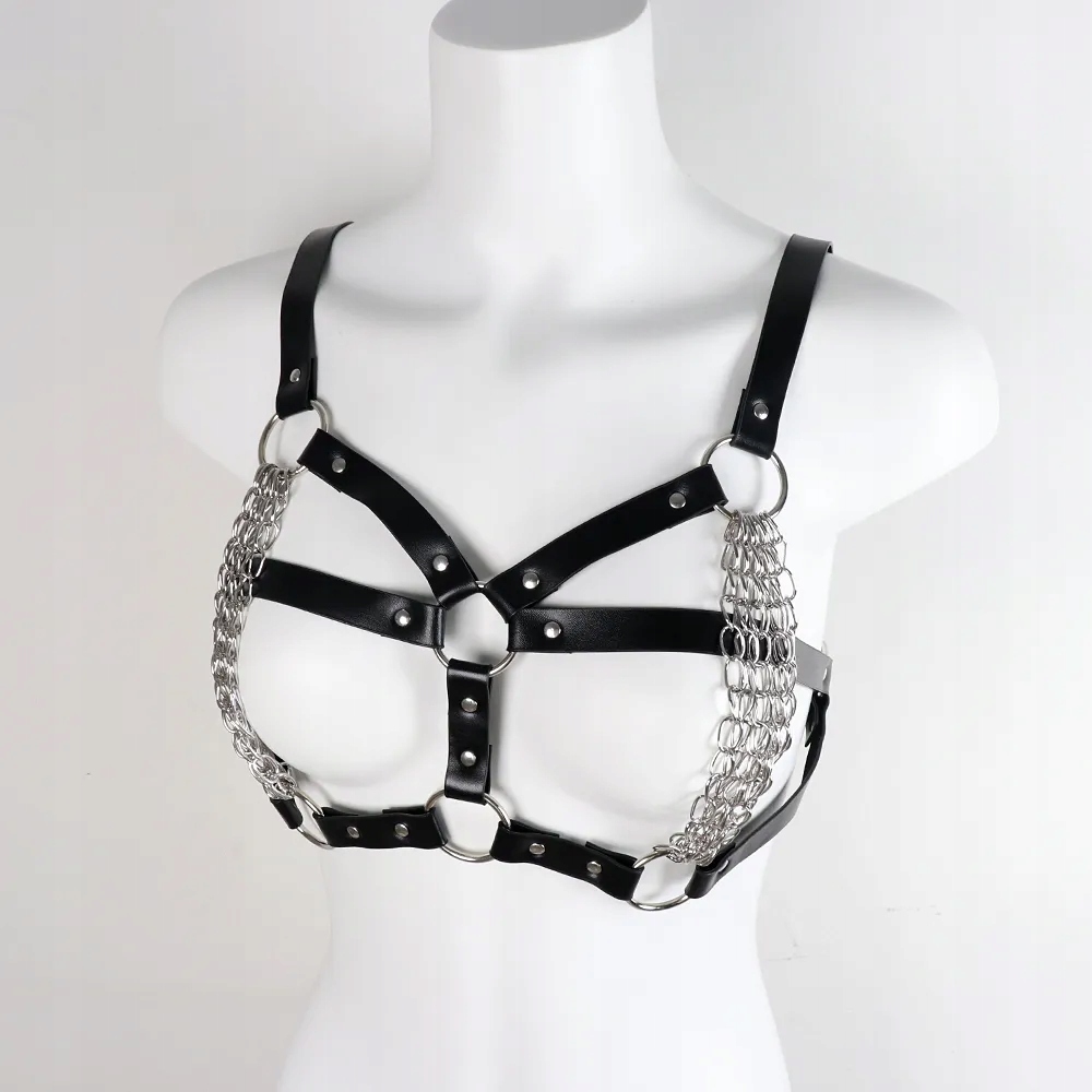 Сексуальні ланцюжки з бюстгальтера з натуральної шкіри, еротичних панк-бдсм