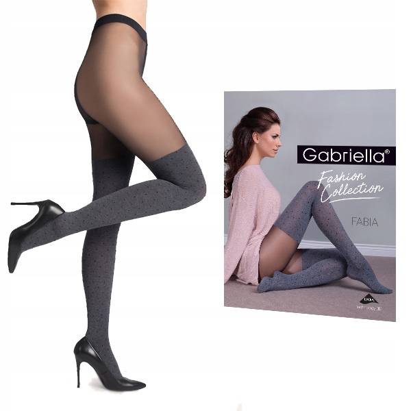 Колготки Fabia, имитирующие чулки, украшают ноги трикотажем двух толщин, сочетая в себе преимущества колготок в горошек плотностью 60 ден и гладких колготок до середины бедра плотностью 20 ден.