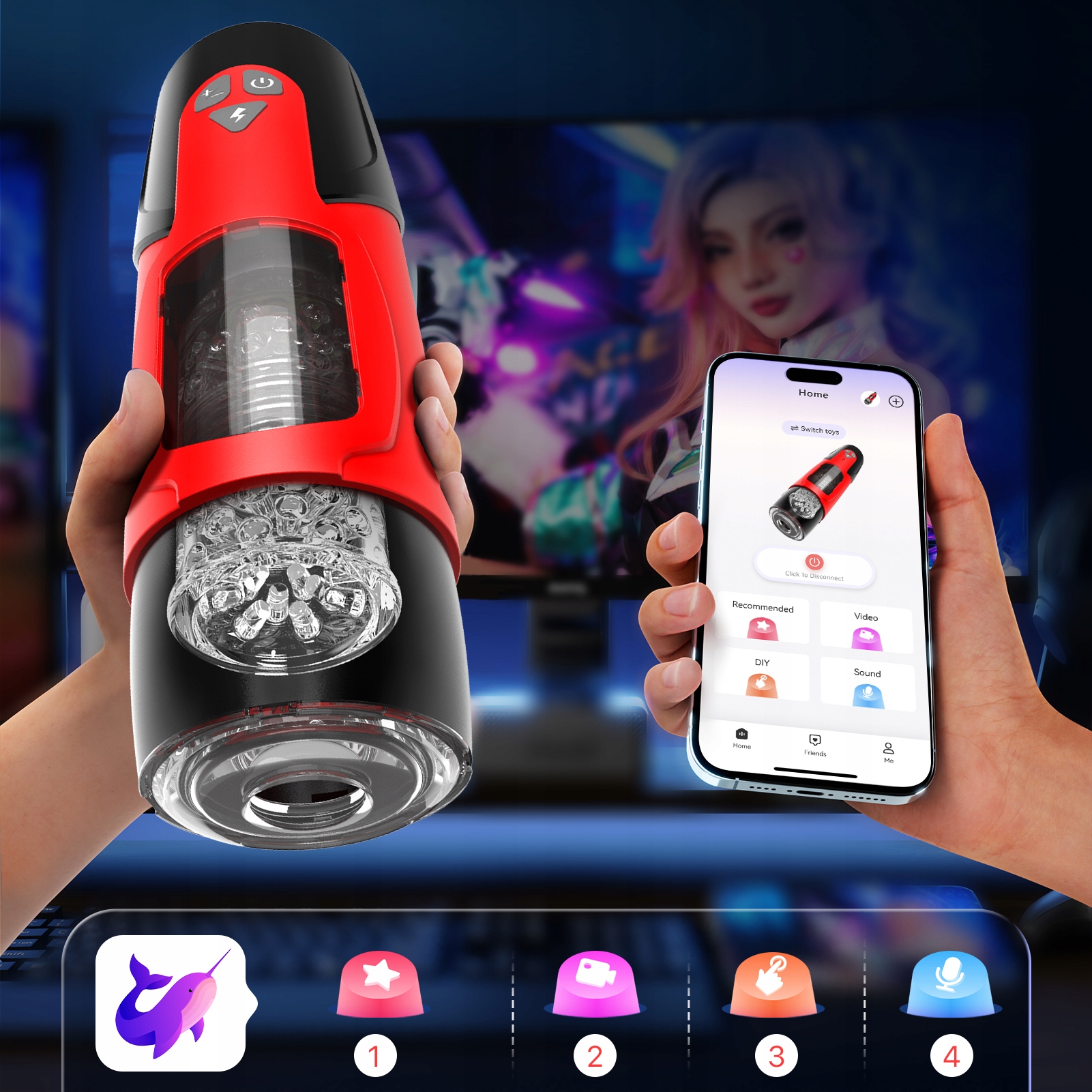 Благодаря функции управления приложением предлагаются различные режимы. Для одиночной игры пользователь может управлять им через приложение для смартфона. Уровни вибрации можно регулировать одним движением пальца.