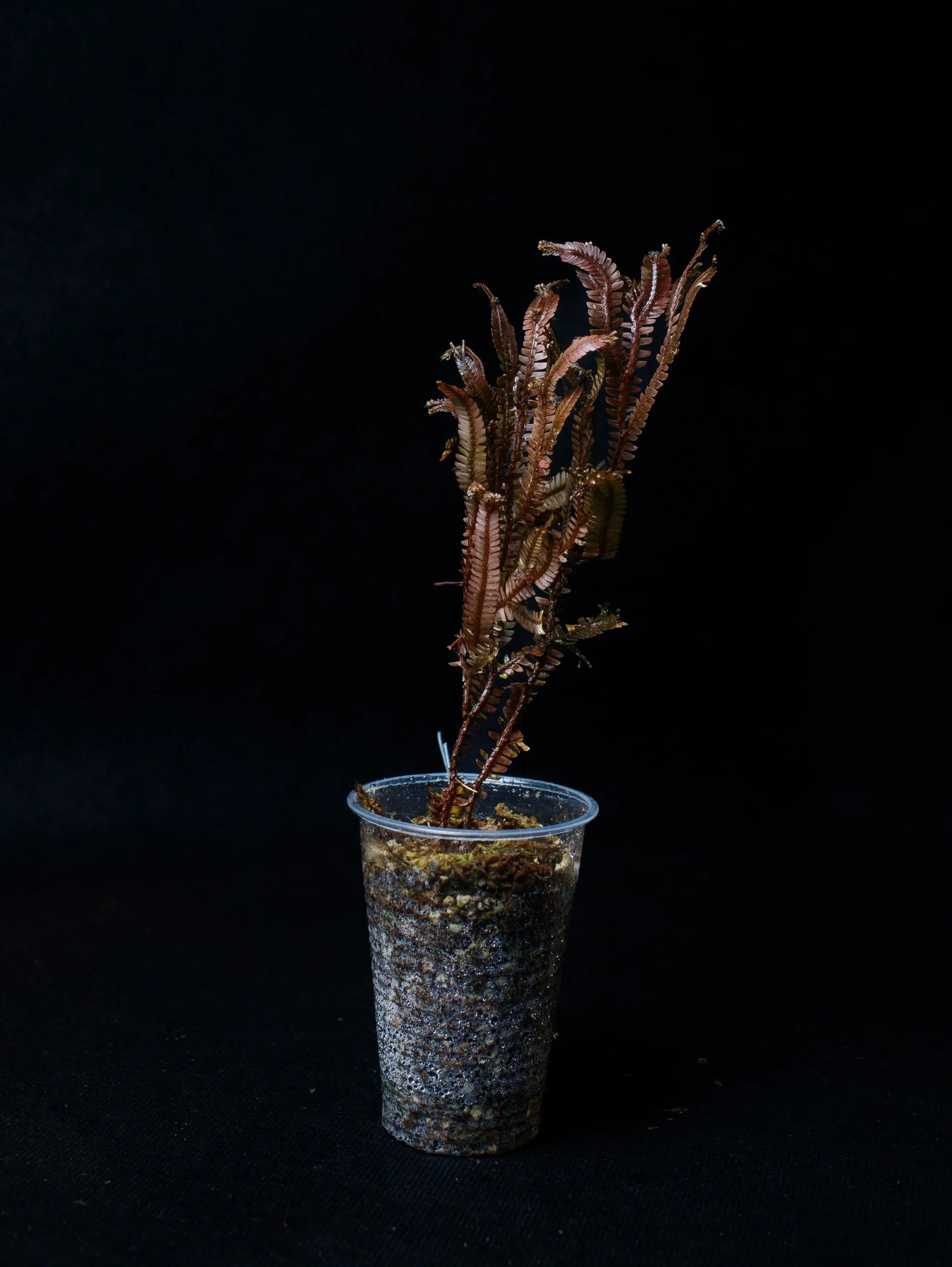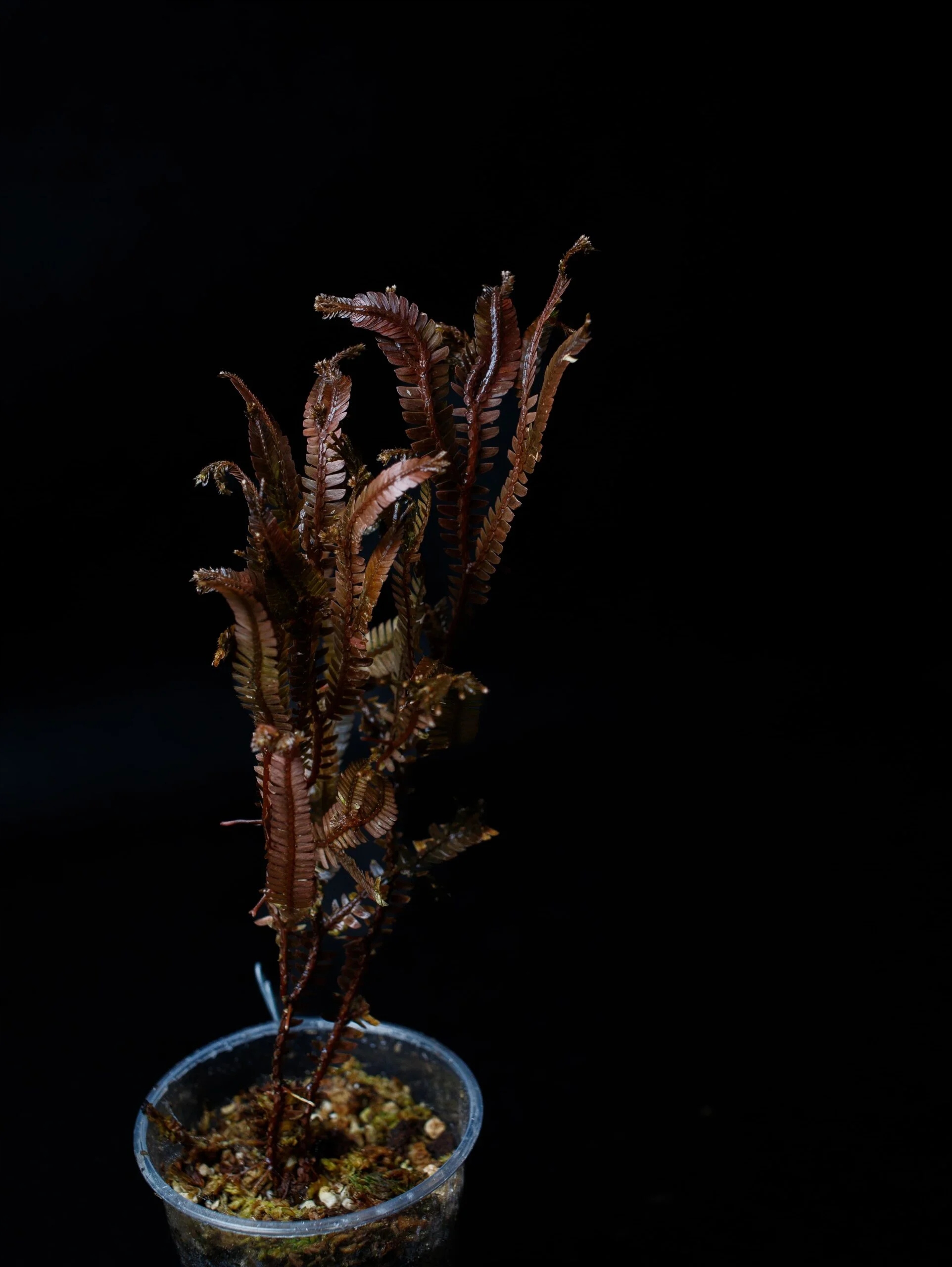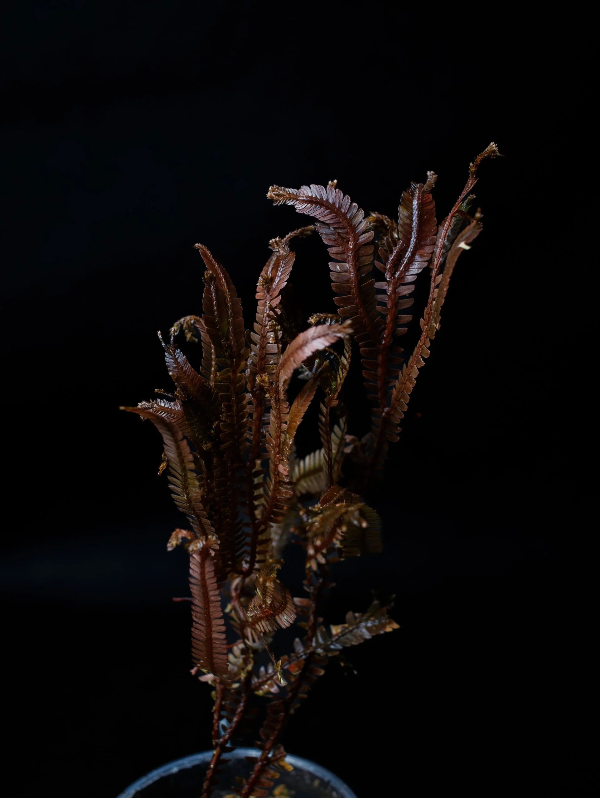 Selaginella sp. «Борнео Браун» — растение с исключительно темной, шоколадно-коричневой листвой. Побеги прямостоячие, растут вверх, разделяясь на правильные «гребешки» из мелких листьев, слегка переливающихся на свету. Новые приросты начинаются с нижних узлов и быстро становятся вертикальными, благодаря чему растение строит высокий силуэт, напоминающий миниатюрный куст. В зрелом состоянии обычно достигает 15, иногда 25 см высоты, сохраняя насыщенный коричневый цвет даже вне периода интенсивного роста.