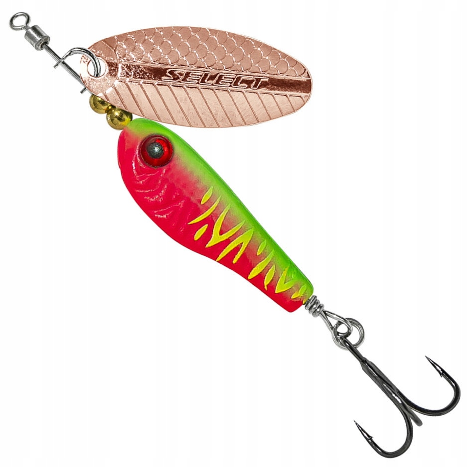 Отличная приманка для ловли на течении. Тело имеет форму маленькой рыбки, выполнено из металла, имеет большую массу и имеет асимметричную форму. Благодаря этому приманка стабильно сохраняет нужную рыболову рабочую глубину и обладает отличными забросовыми свойствами. Вместо передней петельки на леске установлен вертлюжок, что в сочетании с асимметричным корпусом минимизирует перекручивание лески во время ловли. Пластина имеет текстуру рыбьей чешуи, которая создает в воде дополнительный привлекательный блеск. Эта приманка отлично работает не только на речном течении. Heli-X отлично вращается даже в стоячей воде, к тому же на него можно ловить в довольно медленном темпе, что подходит пассивной хищной рыбе. На Хели-Х охотно нападают окуни, щуки, голавли, жерехи и язи, а также форель и хариус, если они встречаются в данной воде. Select Heli-X доступен в 14 цветах и 5 размерах весом от 3 до 14 г.