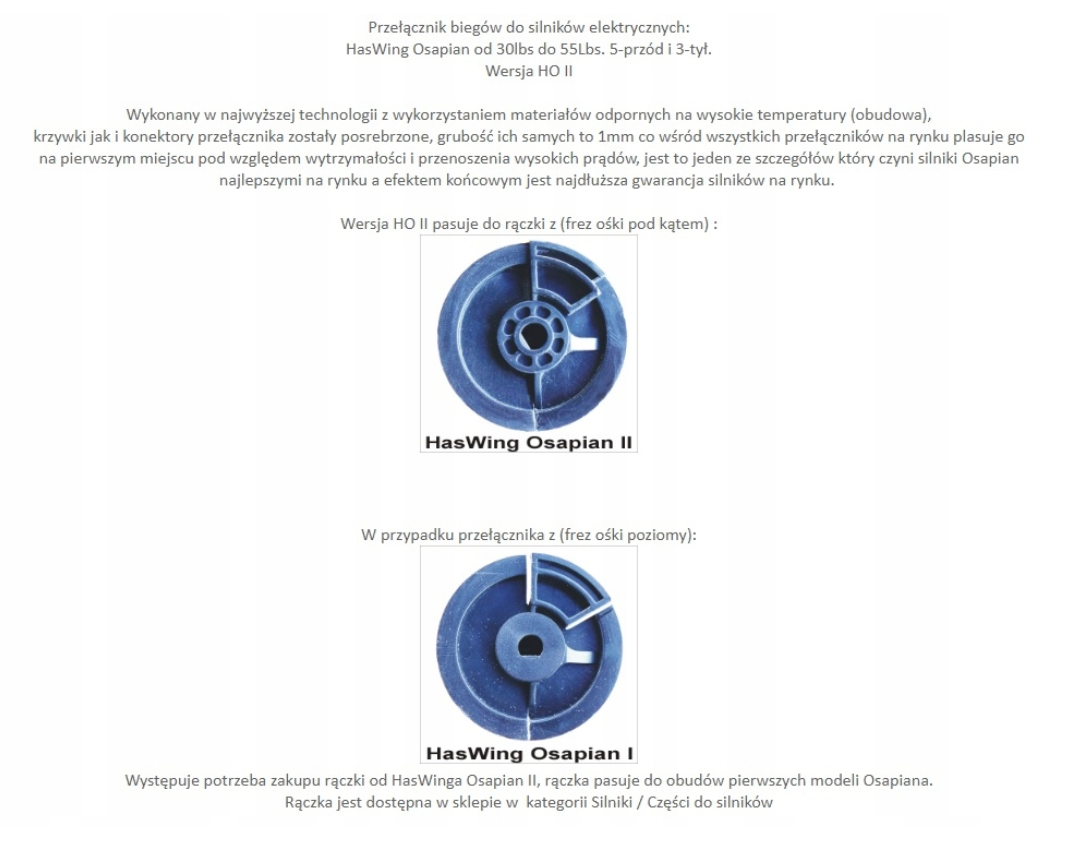 Заказывая «Селектор передач HasWing Osapian» данный товар из каталога «Двигатели, аксессуары», вы можете получить дополнительную скидку 4%, если произведете 100% предоплату. Размер скидки вы можете увидеть сразу при оформлении заказа на сайте. Внимание!!! Скидка распространяется только при заказе через сайт.