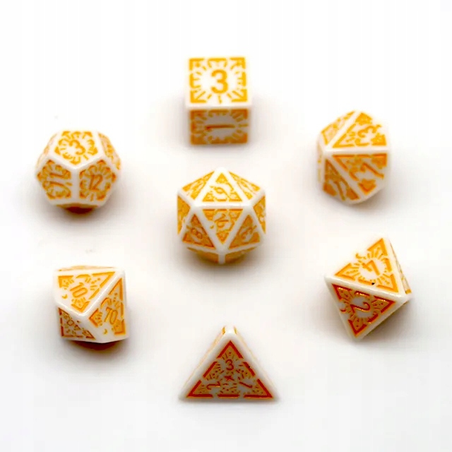 Набор игральных костей, то есть семь высококачественных игральных костей. Благодаря соответствующему балансу ими очень удобно пользоваться.