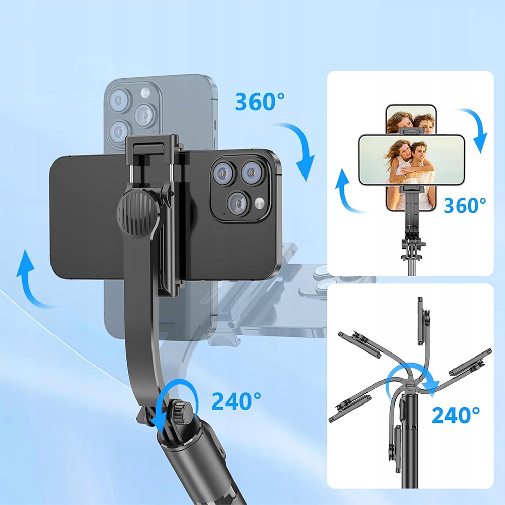 - Наша палка для селфи сочетает в себе регулировку на 240° и вращение на 360°, что позволяет легко найти идеальный ракурс и запечатлеть далекие пейзажи или особые моменты с близкими.