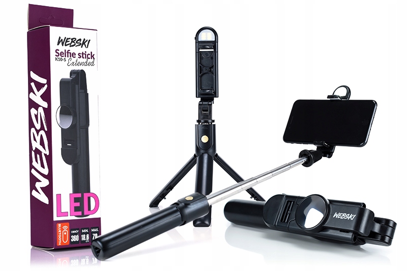 WEBSKI SELFIE STICK K10s УВЕЛИЧЕННЫЙ ШТАТИВ С ДИСТАНЦИОННЫМ УПРАВЛЕНИЕМ И СВЕТОДИОДНОЙ ПОДСВЕТКОЙ