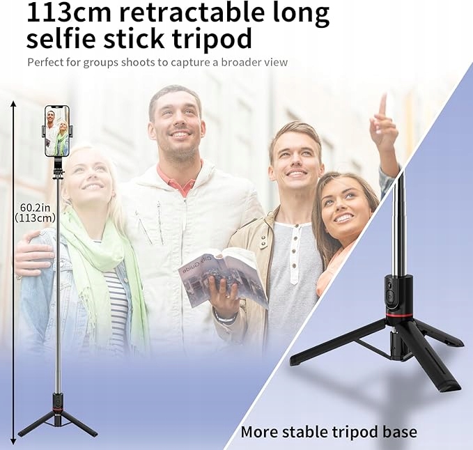 - 【Новые улучшения, усиленная подставка для штатива】Благодаря встроенному штативу с экраном вы можете напрямую регулировать мобильный штатив и использовать утяжеленное основание штатива, которое обеспечивает большую устойчивость, чем другие обычные палки для селфи. Это позволяет делать фотографии в полный рост, не держа в руках палку.