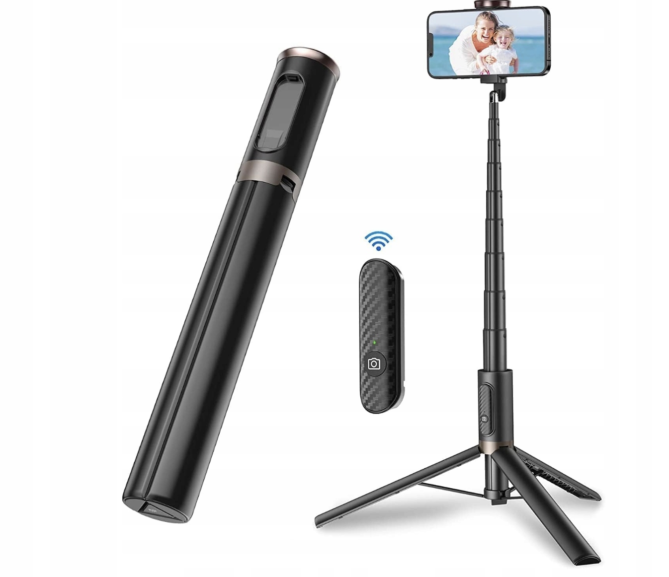 - Штатив и стойку для селфи можно быстро заменить, что облегчает семейные встречи и возможность запечатлеть прекрасные моменты в дороге.