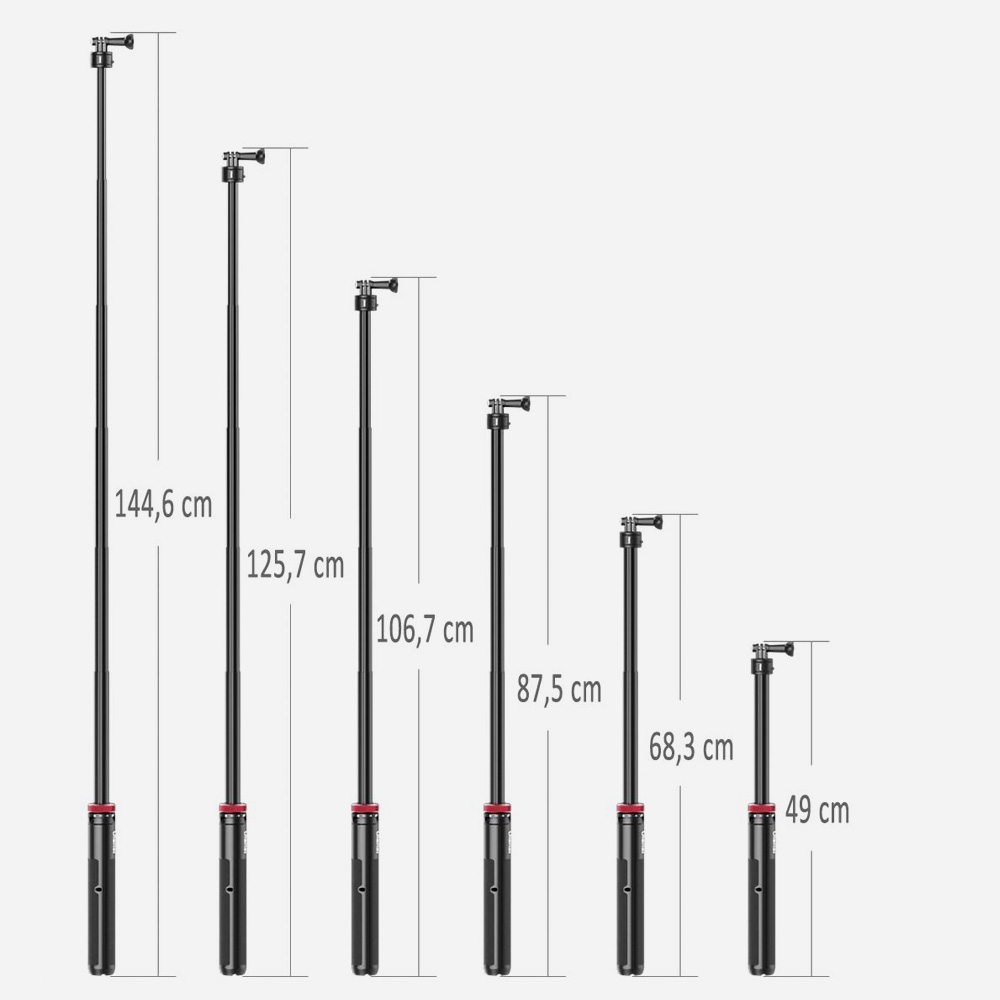 Вам больше не придется просить кого-либо сфотографировать вас, и вы сможете делать снимки с расстояния, превышающего досягаемость руки. Благодаря шестиступенчатой регулировке можно плавно менять длину палки в диапазоне от 25 см до 140 см.