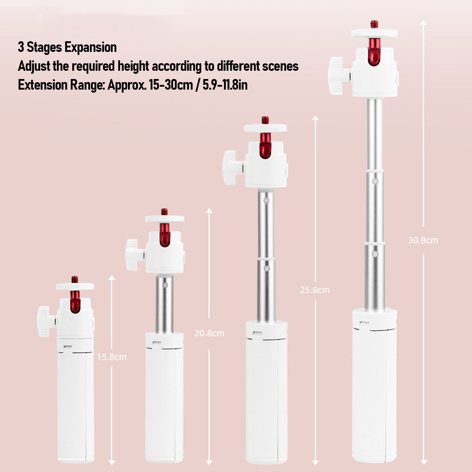 2. Adjustable durability: adjust your photographic configuration with this retractable stick, which offers a wide range of 15-30 cm. Adjust the height to your specific requirements or to find the best where the structure