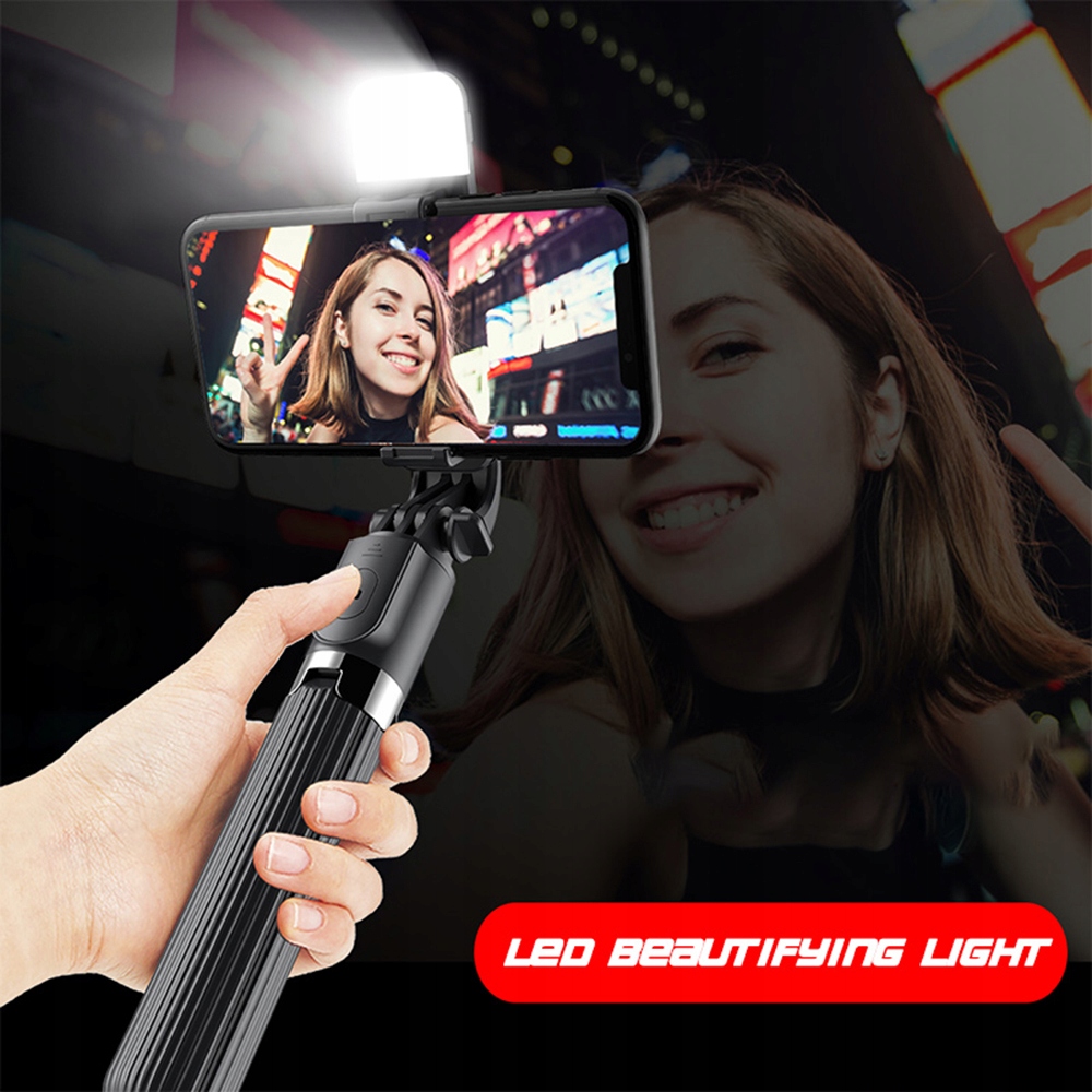 с пультом дистанционного управления Bluetooth, стабильным штативом, светодиодной лампой и длиной до 84 см - черный