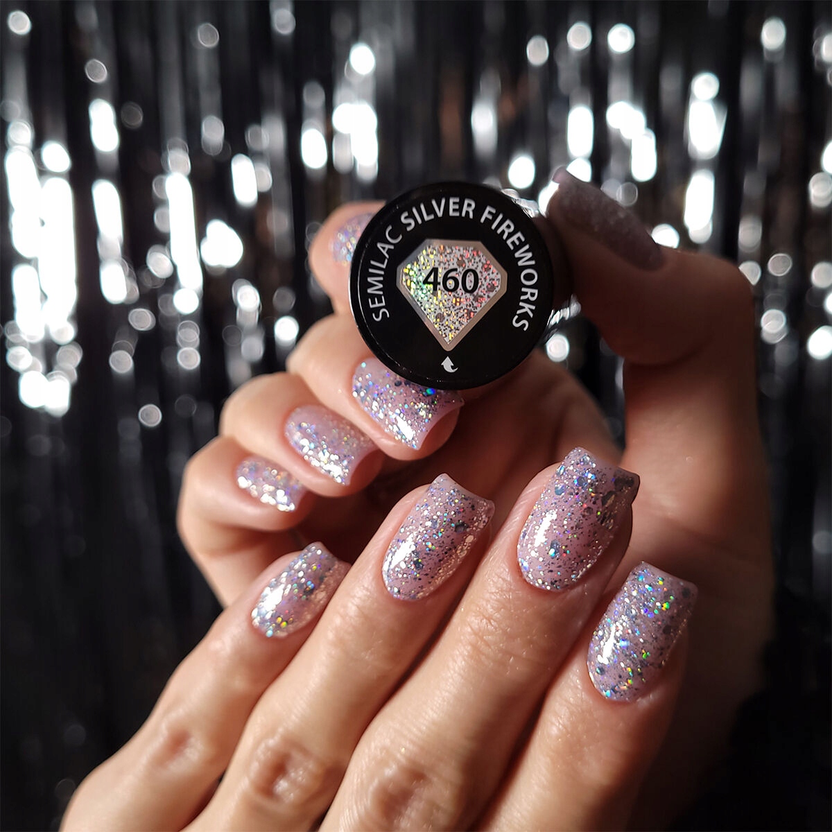 ⭐semilac 460 Серебряный фейерверк Гибридный лак 7 мл серебряной вспышки efekt h1>