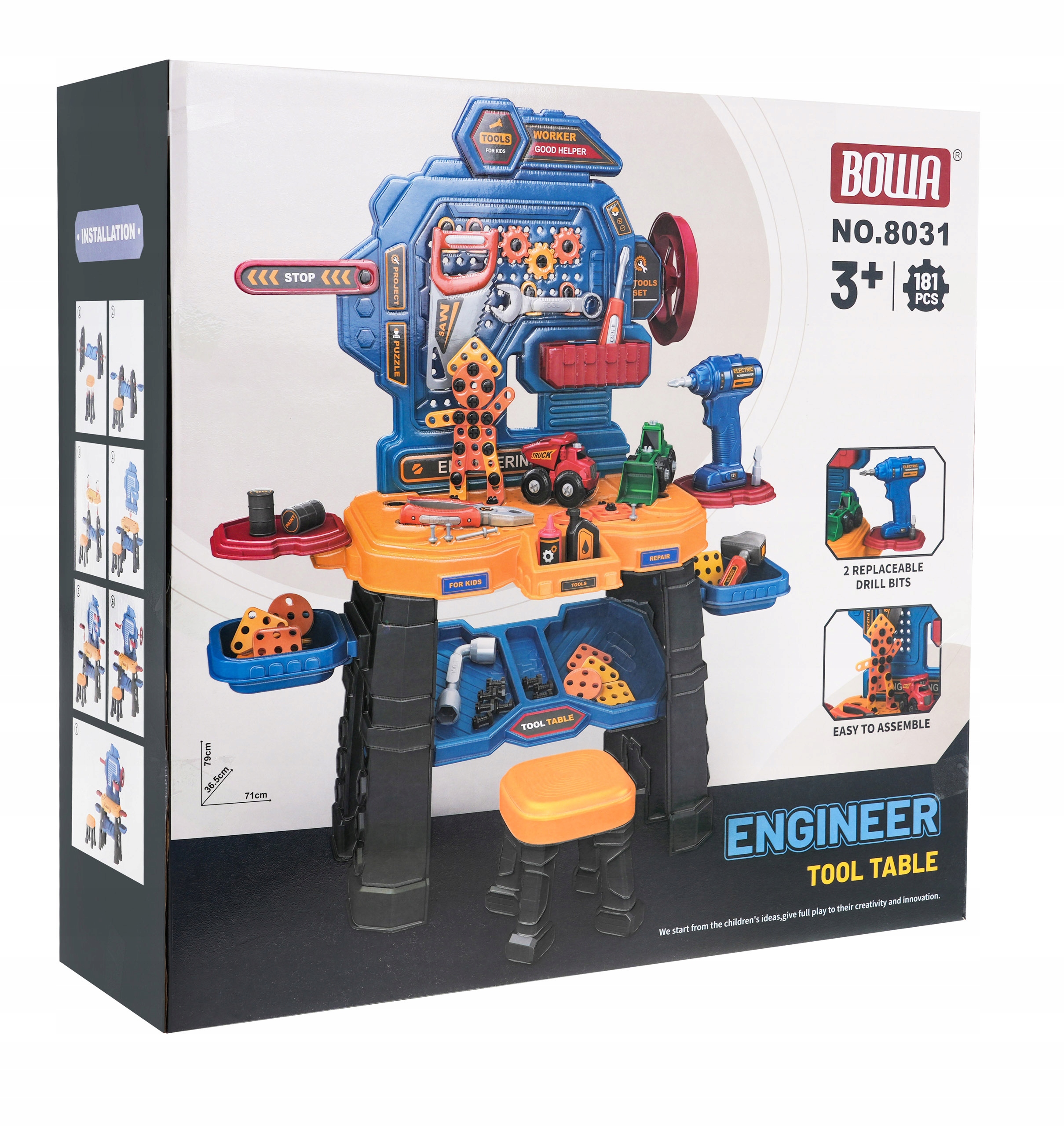 - Большой набор DIY со столом, стул и отвертка смесителя с замеными кончиками - это предложение для детей от 3 лет. Набор изготовлен из высококачественных материалов. Комплект включает в себя 181 элемент. Ваш ребенок может сложить таблицу DIY - семинар и организовать все инструменты, необходимые на работе. Набор включает в себя мин. Инструменты, такие как тренировка с заменяемыми наконечниками, пила, отвертка, клавиши, молоток, плоскогубцы и много винтов для прикручивания и откручивания. Тренировка питается на 2 x 1,5 В аккумулятора (батарея не входит в набор), вы можете закрутить его и скрутить винты.