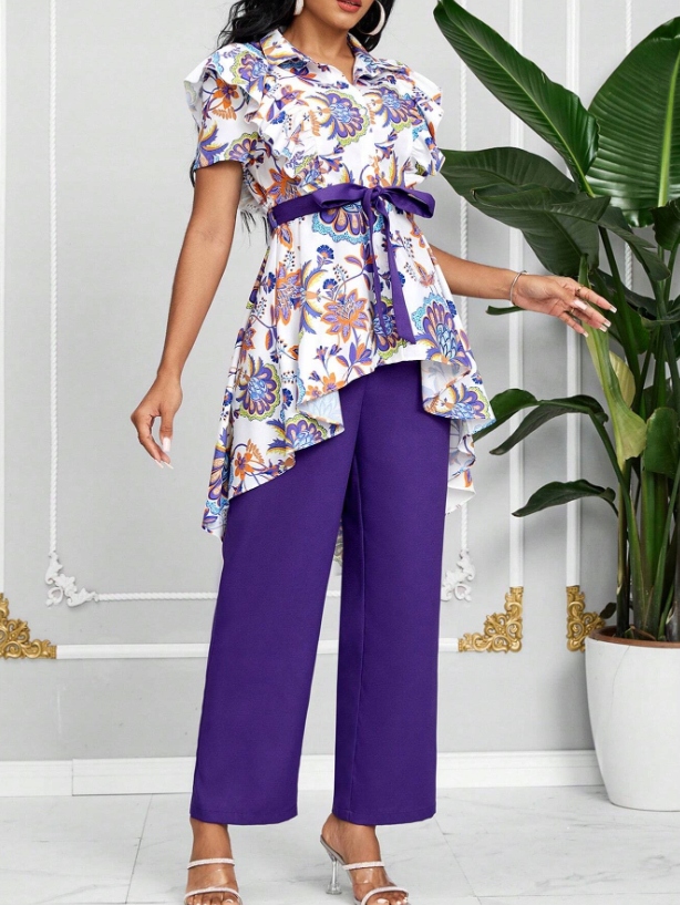 Шейн установил женскую блузку и белые и фиолетовые штаны M 473