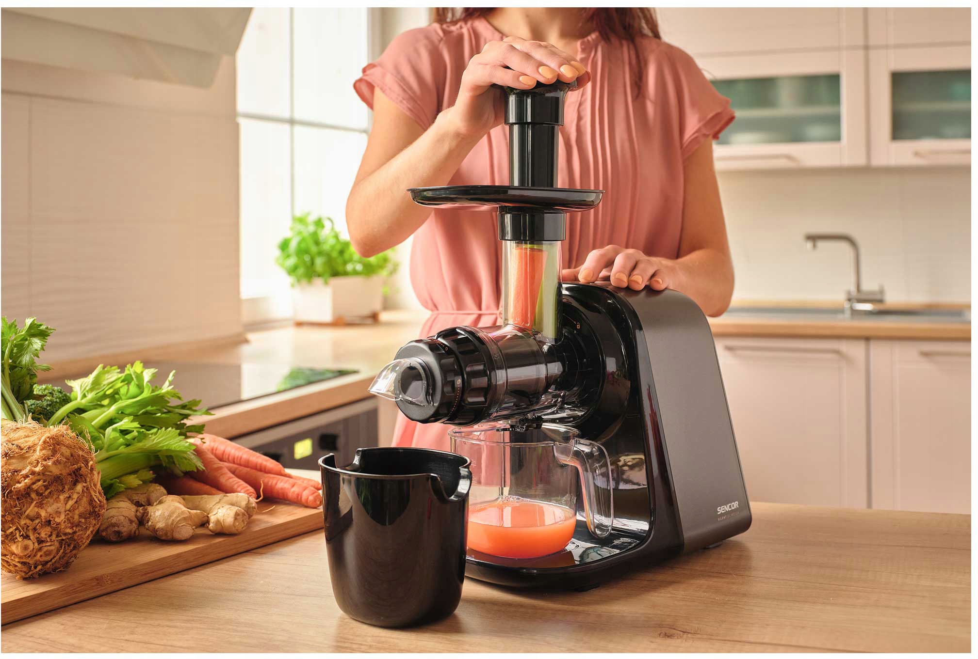 Sencor SSJ 0900 Вертикальная медленная соковыжималка черная 150 Вт 80 об/мин