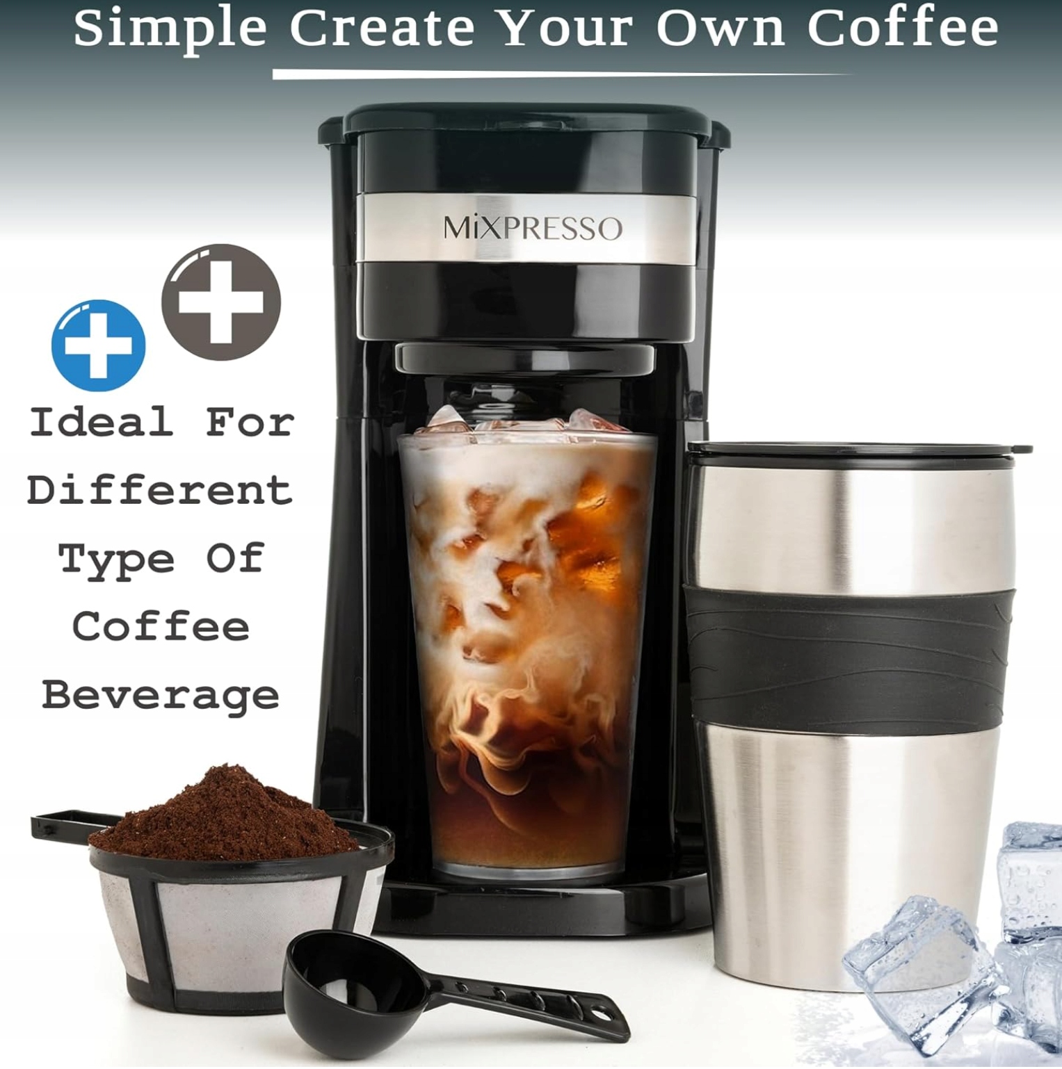 Экспресс для быстрого ароматического кофе. Путешествовать. С постоянным наземным кофейным фильтром. Ароматический кофе, свежесваренная чашка за чашкой. Автоматическое отключение также можно использовать с кофейными пакетами. включил керамическую кружку (420 мл) и mug Thermal (420 мл). Ремонт воды 420 мл 650 Вт. Размеры: ширина 13.5xwys.28x ceramic