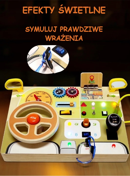 Присутствует вашему ребенку увлекательный автомобильный мир, используя эту интерактивную и образовательную игрушку, имитирующую рулевое колесо автомобиля. Сделанная из безопасного, долговечного дерева, игрушка была разработана для того, чтобы вдохновлять небольших исследователей, чтобы учиться в игре, одновременно развивая свои моторные и когнитивные навыки. Он предлагает множество функций, в том числе движущиеся элементы, такие как рулевое колесо, зеркала, переключатели и индикаторы, которые поддерживают понимание основных механизмов работы транспортного средства. Все это обеспечилось готовым играть, как только вы удалите из упаковки. Идеальный инструмент для игры и обучения для детей дошкольного и раннего школьного возраста. Доска заставляет звуки, подражая автомобилю, светящиеся светодиоды, звук рога. Батареи в съемочной площадке.