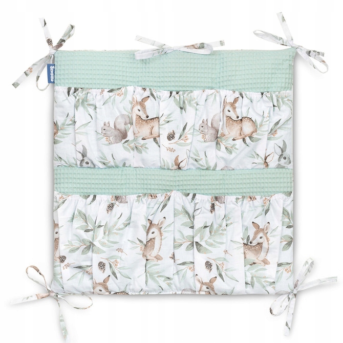 Органайзер «Вафельная кроватка» – это не только практичный товар, который облегчит уход за малышом, но и украшение детской комнаты. Имеет5 карманов, усиленных резинкой, в которые поместятся все необходимые аксессуары. Верхние карманы примерно 15 см х 15 см, нижние 24 см х 18 см. Ящик для инструментов можно легко закрепить на каркасе кровати с помощью вшитых лент. Дополнительно усилен слоем антиаллергенного силиконового нетканого материала. Снаружи отделана 100% хлопком. Органайзер можно комбинировать с другими товарами из нашего предложения.