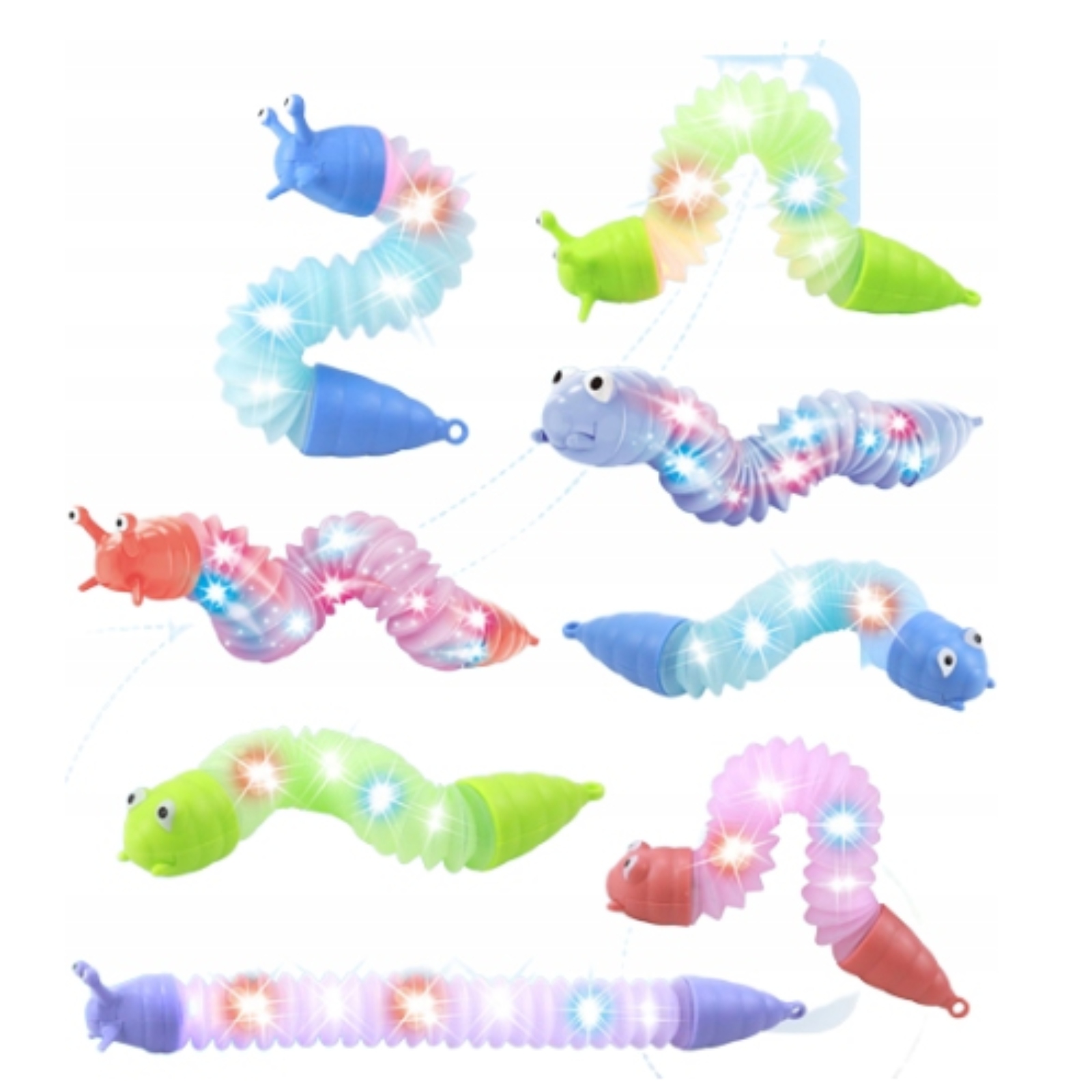 ✨ Светодиодная гусеница поп -труб -это необычная анти -стрижающая игрушка, которая притянет каждого ребенка в мир творческого веселья. Растягивайте, согните, послушайте и посмотрите, как это сияет в темноте - и все это за развитие чувств и ручных способностей!