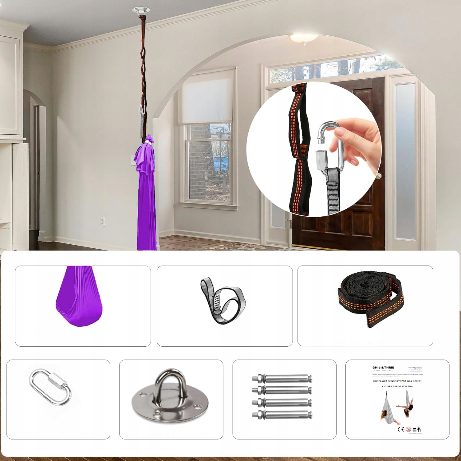 - ➡️ 1 нейлоновые сенсорные качели 400см х 150см с предварительно завязанной О-образной стропой