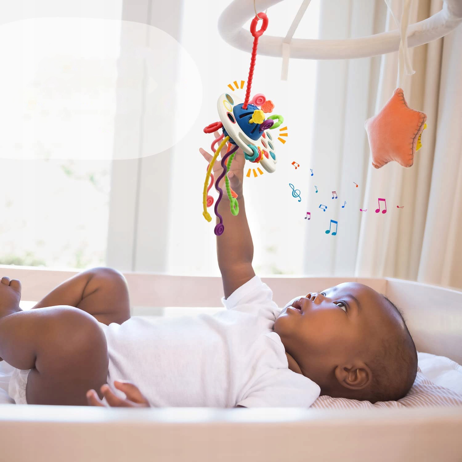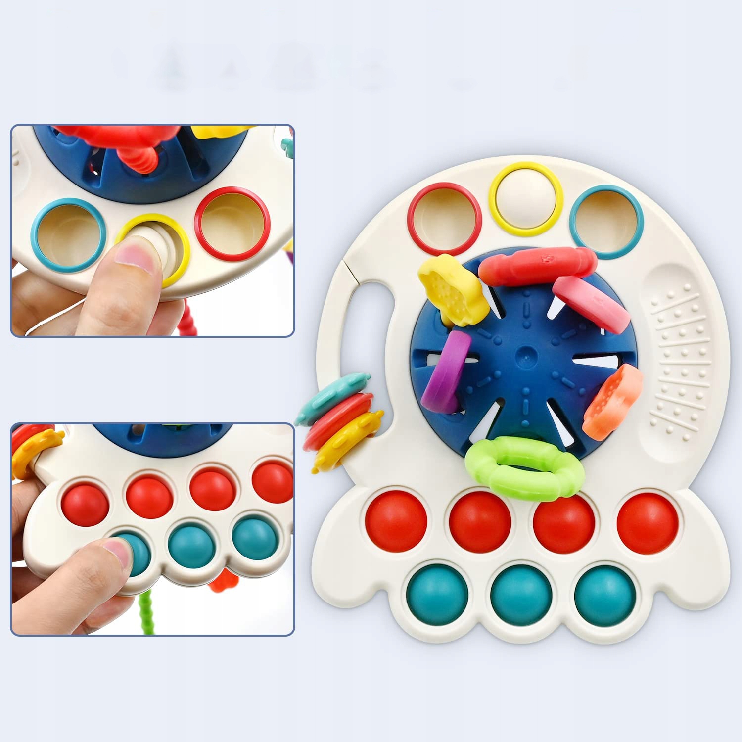 - На одной стороне осьминога также находится игрушка для пальцев, которая обеспечивает ребенок с большей сенсорной игрой.