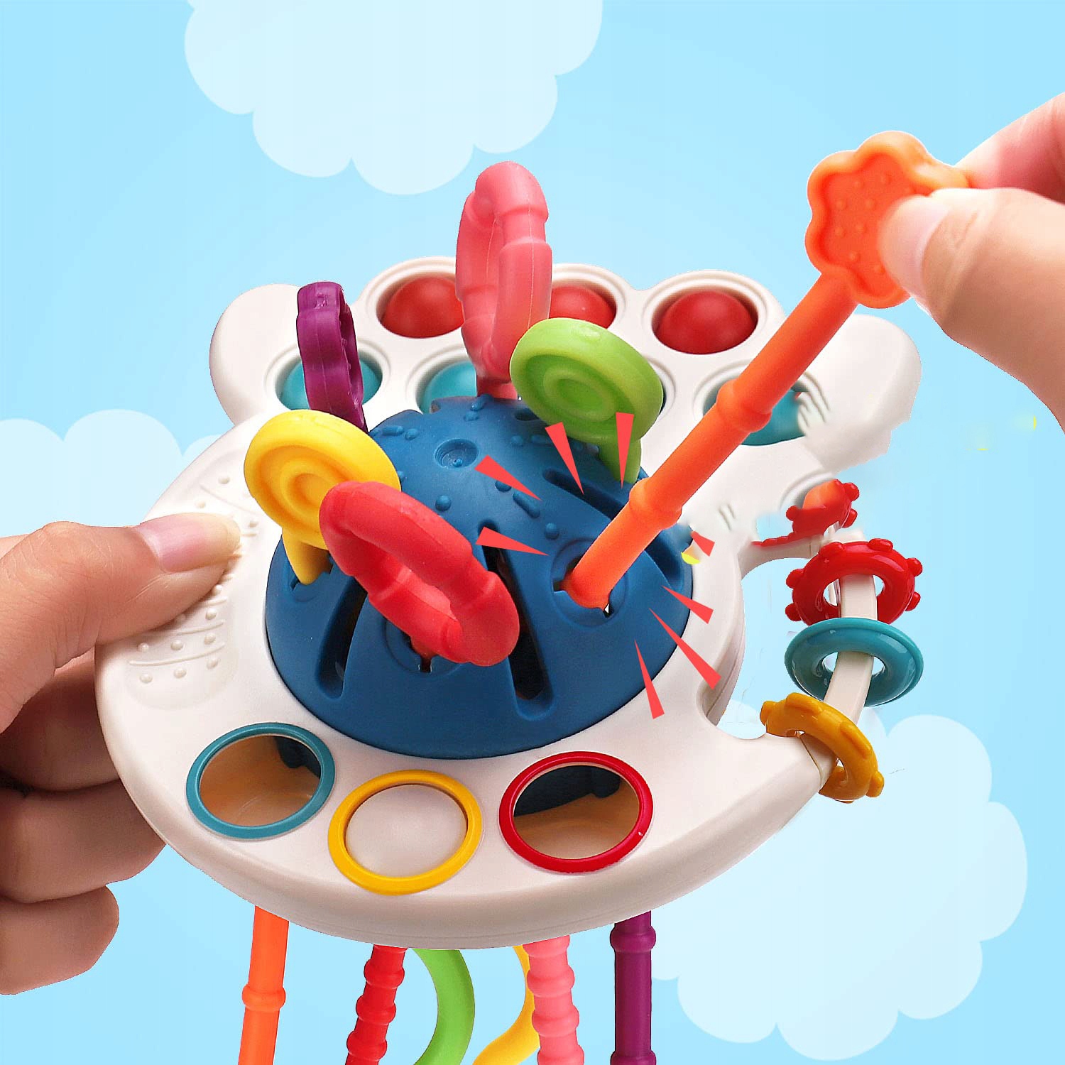 - Обучающие игрушки «тяни-толкай» бывают самых разных текстур и цветов, разными способами. играть, например подтягивать вверх и вниз, нажимать, хлопать, жевать, греметь.