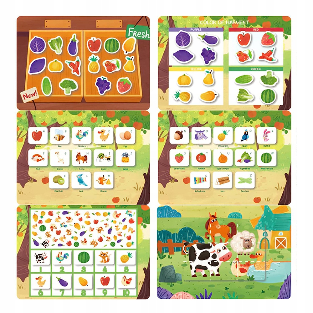 - 🐄 【Тема фермы】Новейшая немая книга Монтессори включает 10 различных тем, включая «Узнавание животных», «Узнавание чисел», «Нахождение дома овощам и фруктам», «Числа сидя», «Загадки о животных» и т. д. Эти веселые истории могут стимулировать детское воображение и творческие способности. Обучаясь через игру, дети развивают мелкую моторику, навыки решения проблем, зрительное восприятие, речь, логику и многое другое. Эта тихая книга — идеальная игрушка для раннего изучения английского языка и обучения Монтессори.