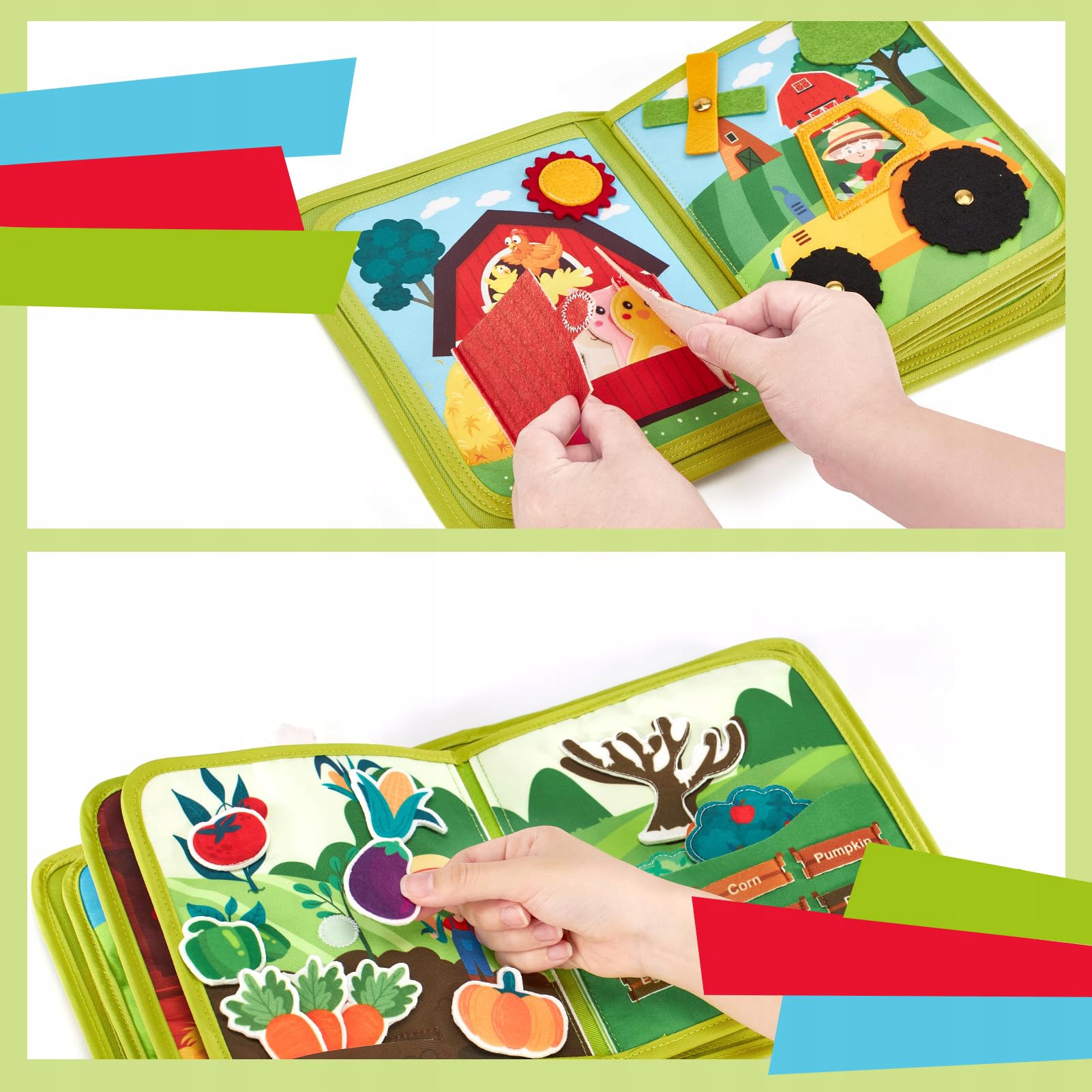 ✅ развивает когнитивное и сенсорное развитие: книга для малышей с игрой использует образовательные методы Монтессори. Откройте для себя мир форм, цветов, сельскохозяйственных животных, фруктов и овощей. Интерактивные элементы, такие как игрушки на пальцах, вращающий вентилятор и кормление коров травой, стимулируют сенсорное развитие и когнитивные навыки.