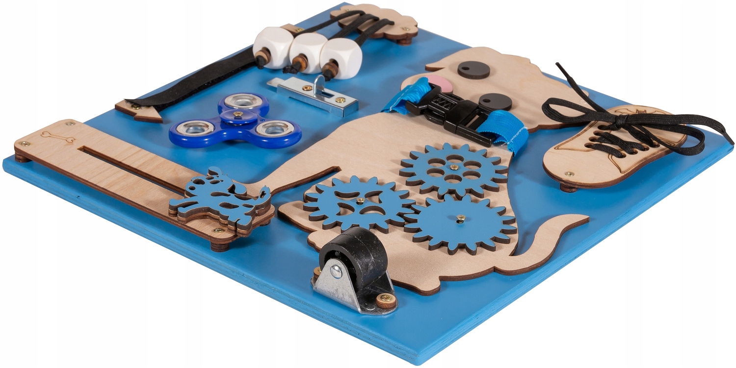 Деревянная манипулятивная доска для детей 9in1 Hugo Blue Dog