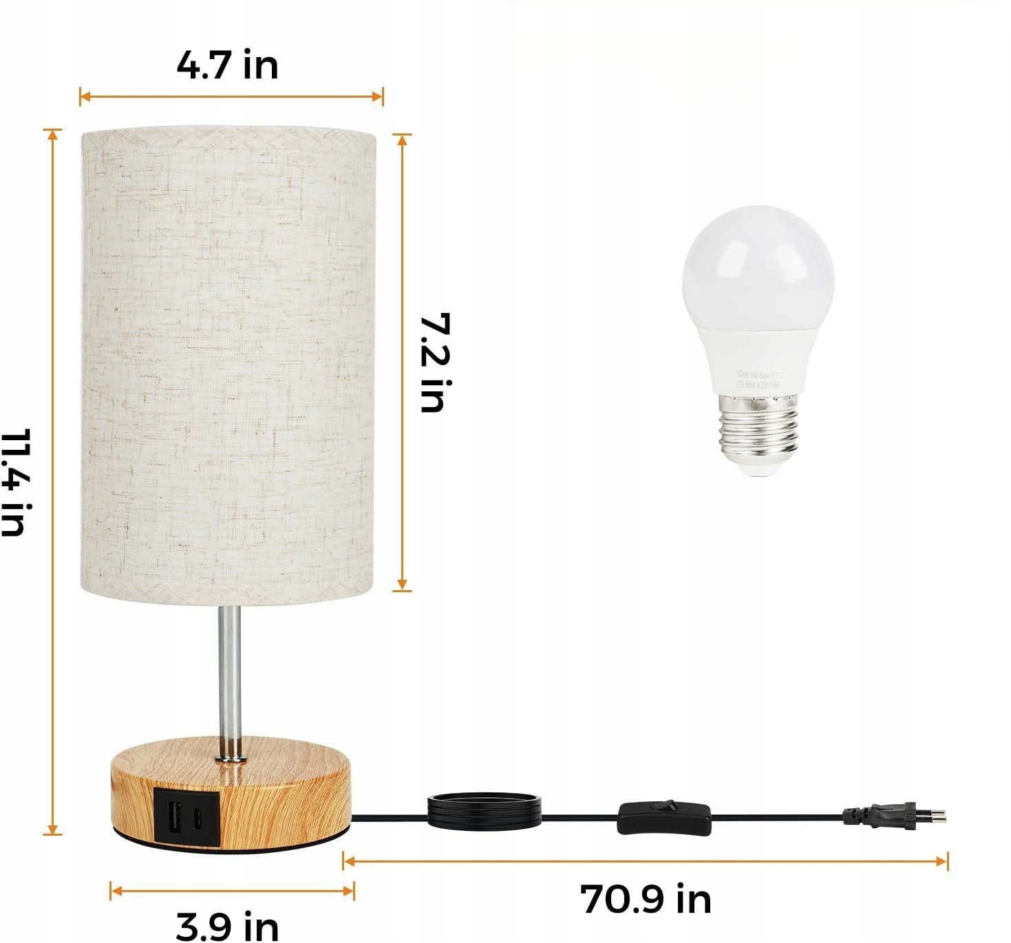 【Высококачественный абажур и основание】: Хорошо сделанный льняной абажур смягчит свет, защитит ваши глаза и создаст расслабляющую и комфортную атмосферу. Деревянное основание, оснащенное быстрыми USB-портами для зарядки, красиво и функционально.