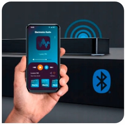 - Беспроводная передача музыки со смартфона или планшета (Bluetooth® v5.1, радиус действия 8 м, в зависимости от условий окружающей среды)
